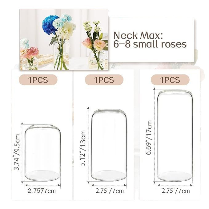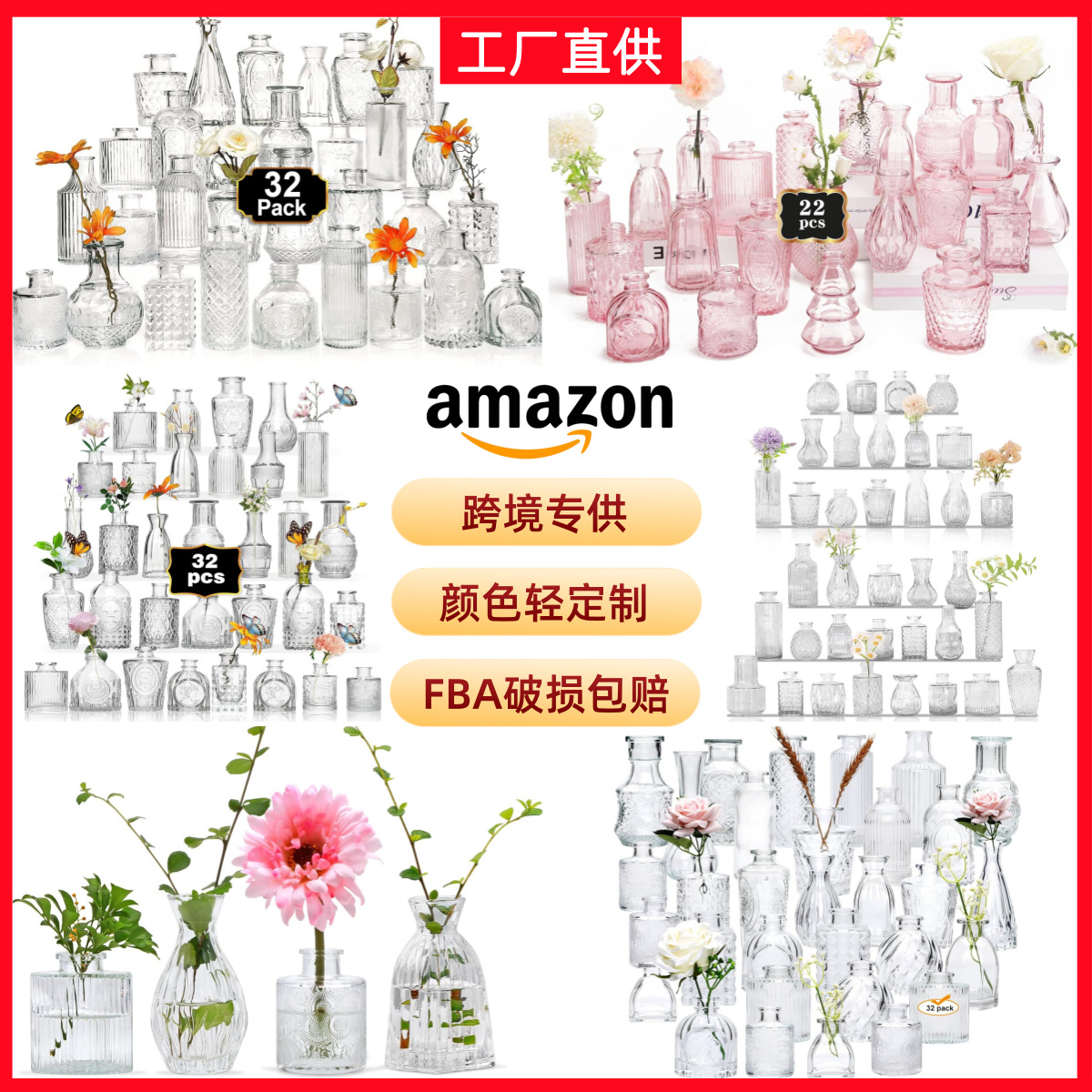 亚马逊同款高硼硅玻璃小口花瓶婚礼家居摆件花瓶直筒创意手工花瓶