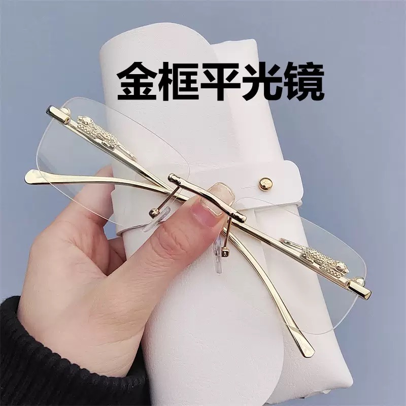 欧美复古豹子高级感墨镜女方圆脸新款防紫外线无框小框太阳眼镜男