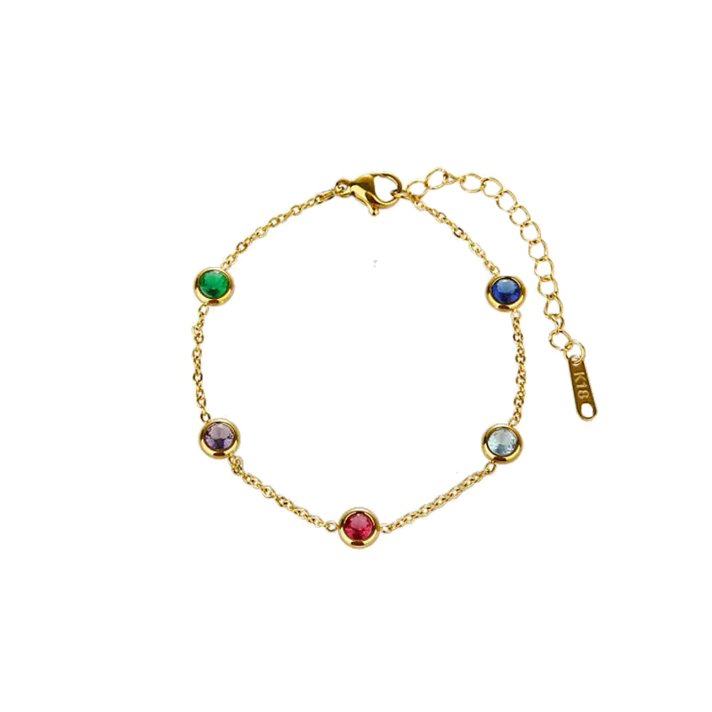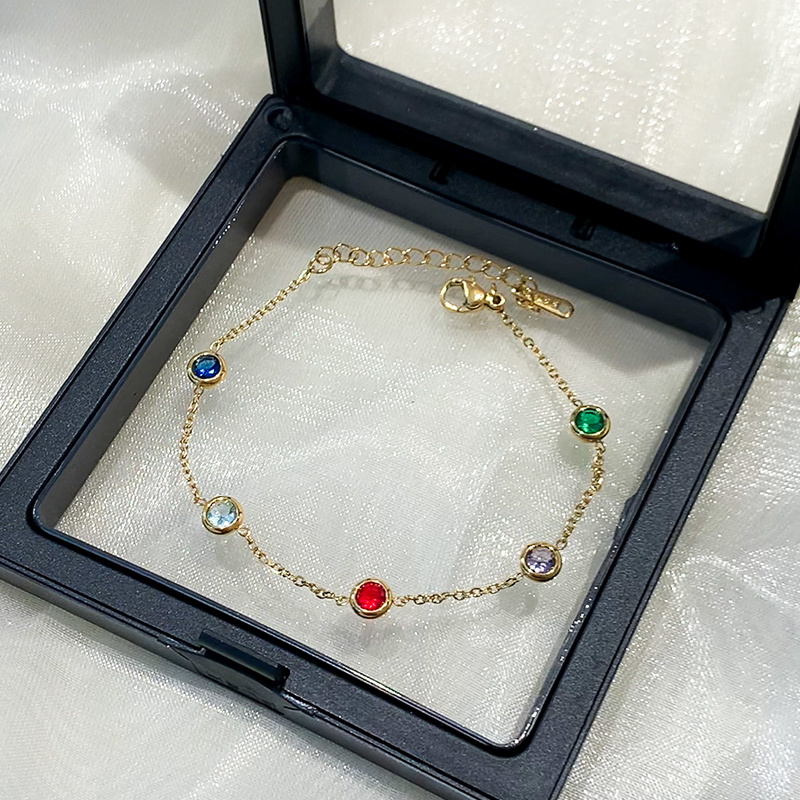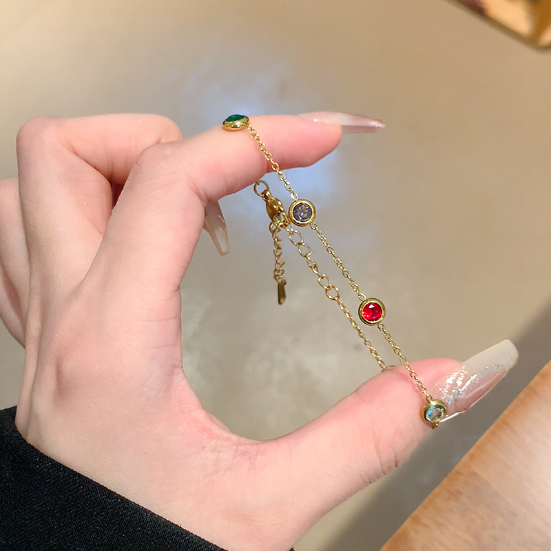 五彩锆石碧玺手链女生新款钛钢手串闺蜜手链轻奢小众精致手绳饰品