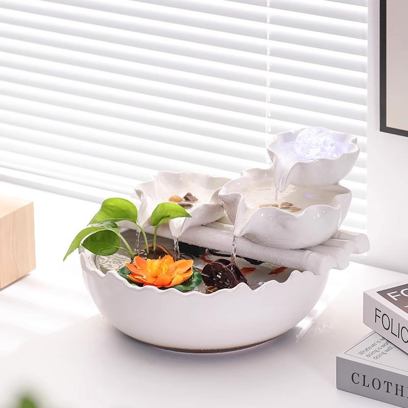 流水循环水摆件陶瓷鱼缸荷花办公桌装饰客厅桌面招财风水轮凤水球