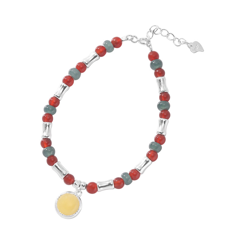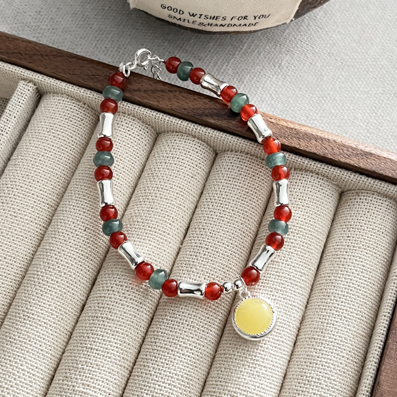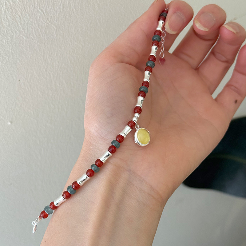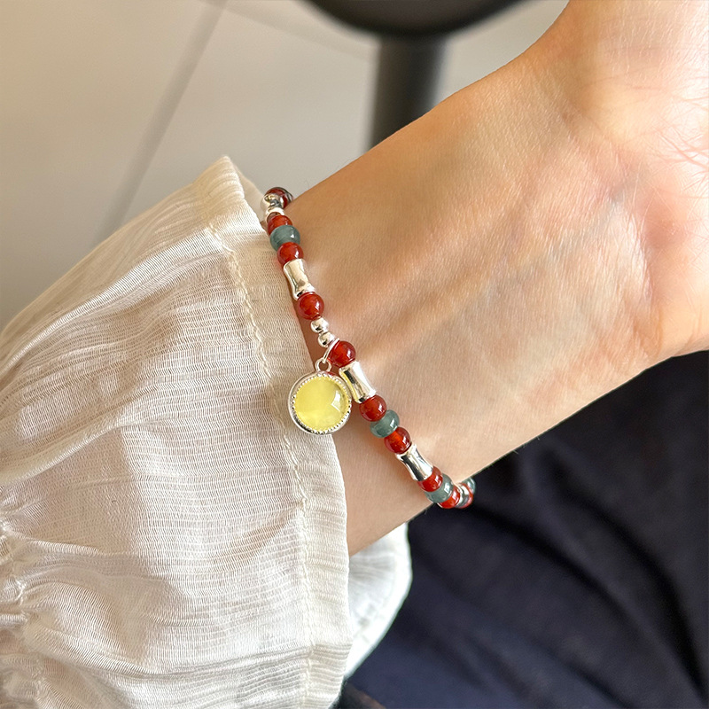 新款s925纯银红玛瑙财神手链女简约新中式国风设计百搭串珠银手饰