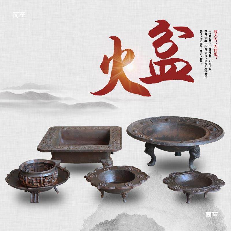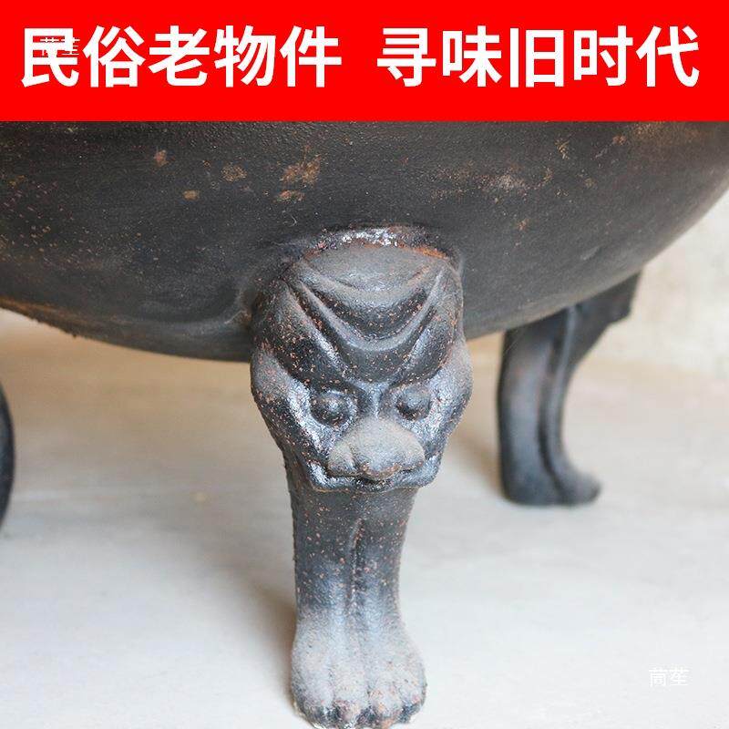 民俗老物件老铁火盆仿古老式铸铁火盆复古装饰摆件取暖炭火盆装饰
