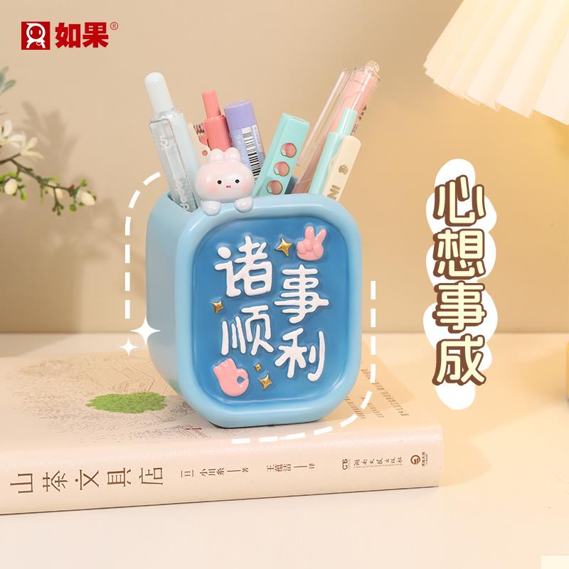 好运来笔筒化妆刷桶治愈系桌面收纳摆件办公室装饰品送女生礼物