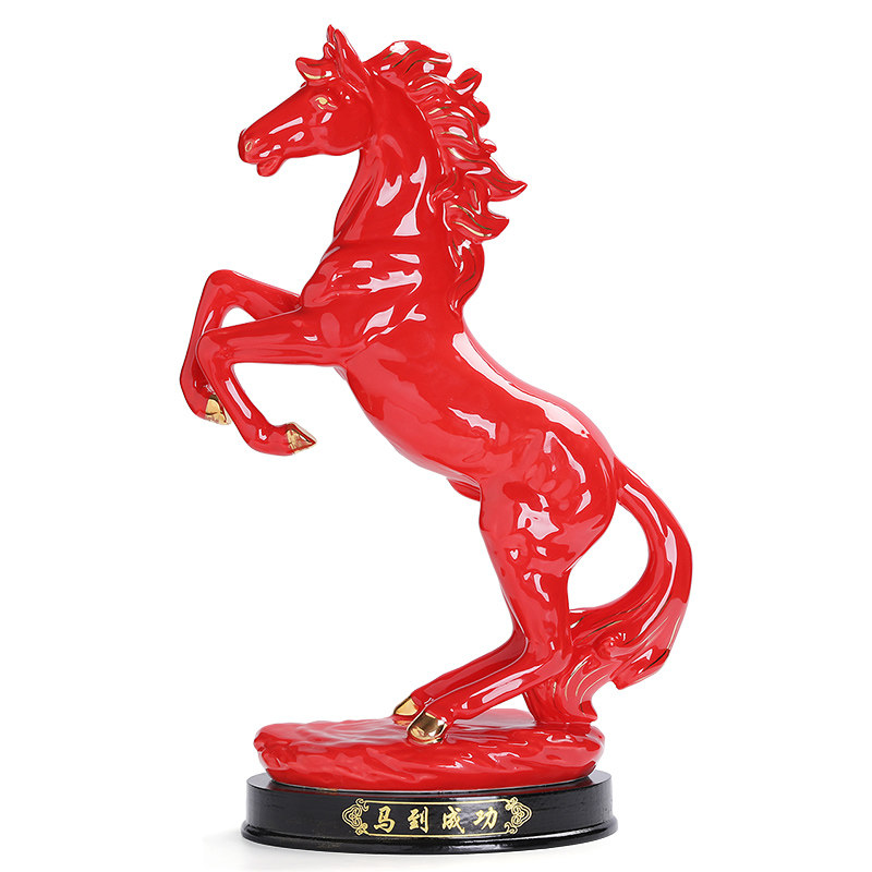 马到成功摆件红色陶瓷马办公室家居装饰创意桌面礼品生肖马工艺品