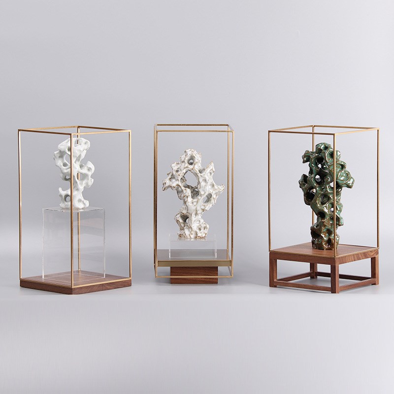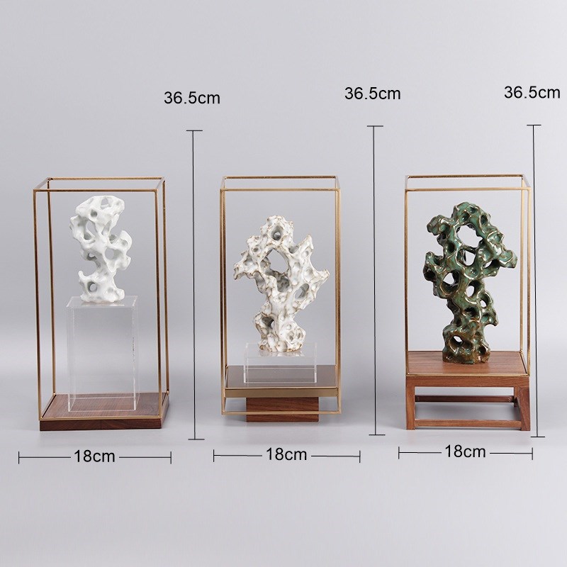 现代新中式陶瓷太湖石摆件家w居客厅玄关软装饰品售楼处样板房摆