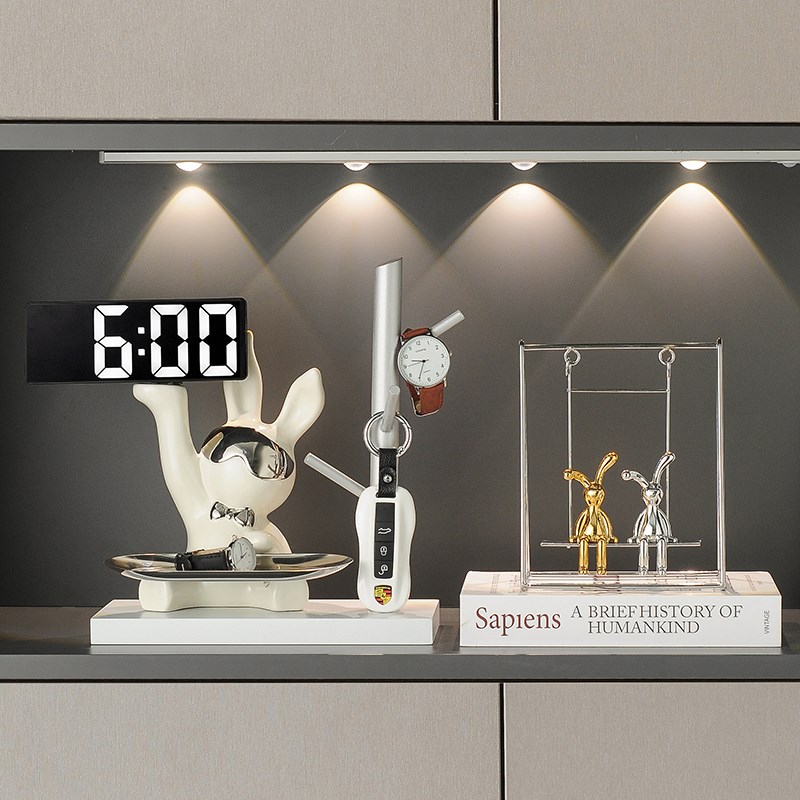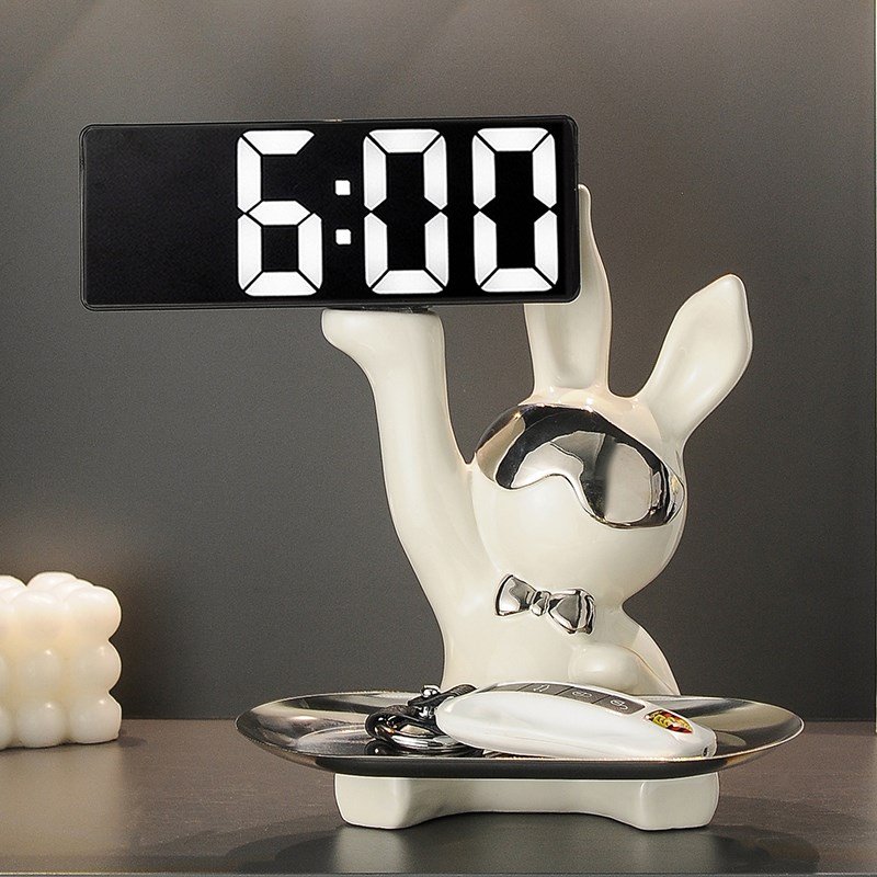 创意墨镜兔入户进门钥匙托盘收纳玄关桌面装饰电子时钟摆件高级感