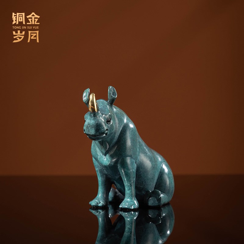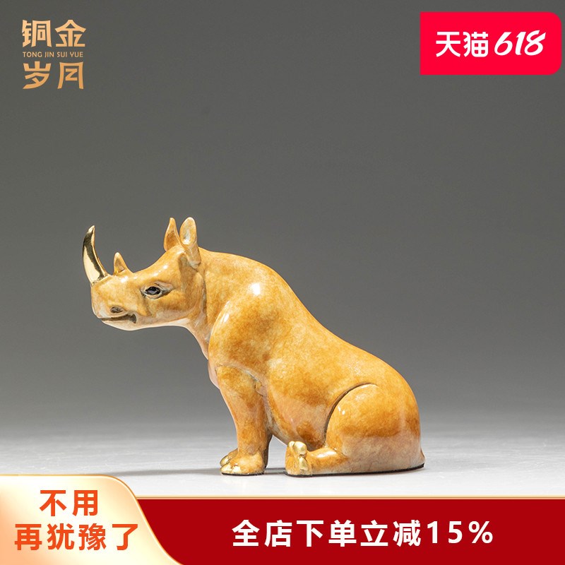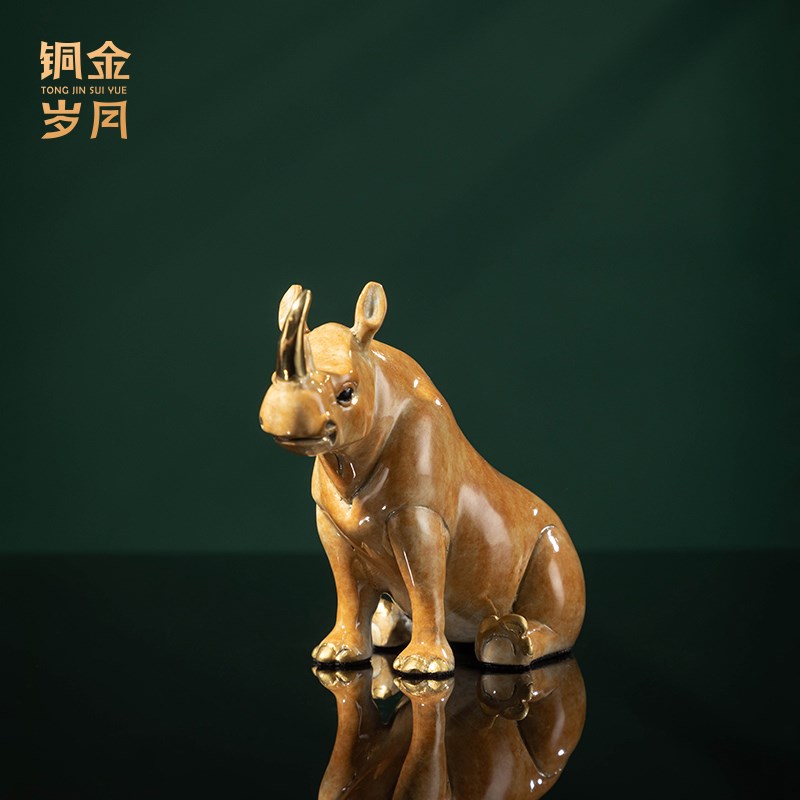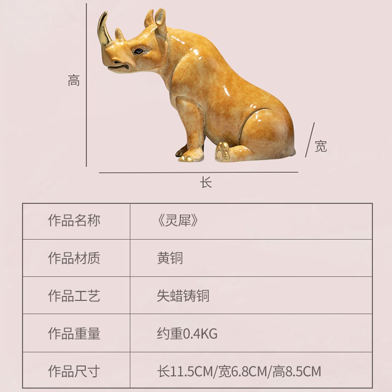 《灵犀》全黄铜犀牛摆件办公室电脑桌面减压可爱装饰动物小摆设