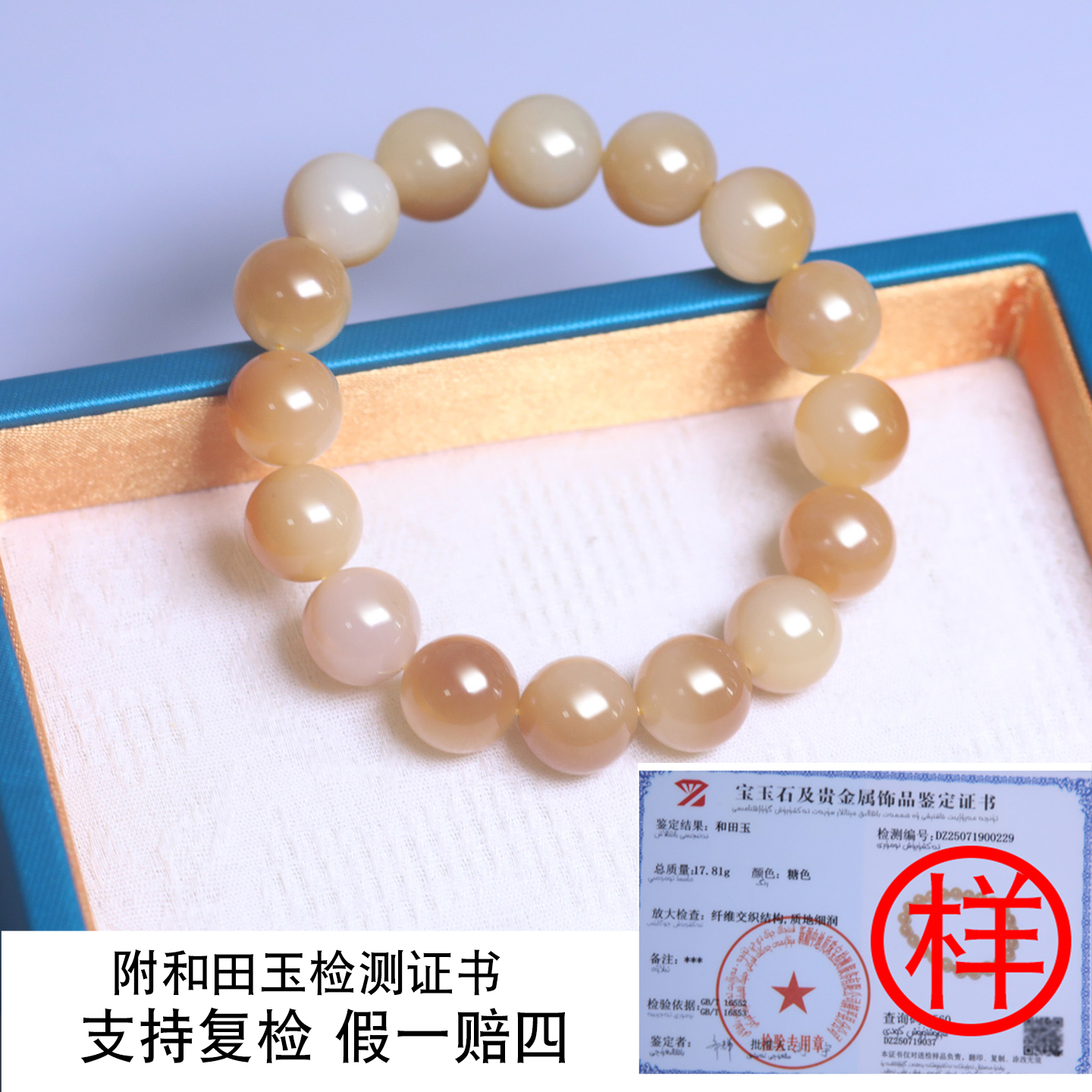 珪宝和田玉糖玉圆珠手链男女款玉手链直径约11.8mm天然玉石带证书