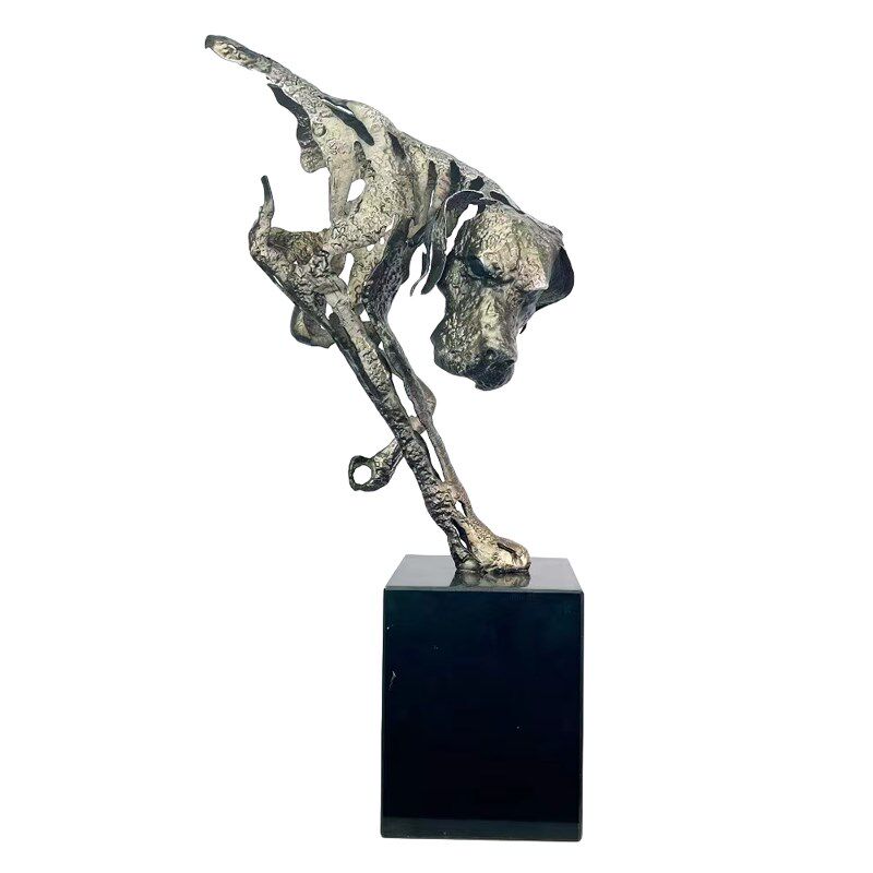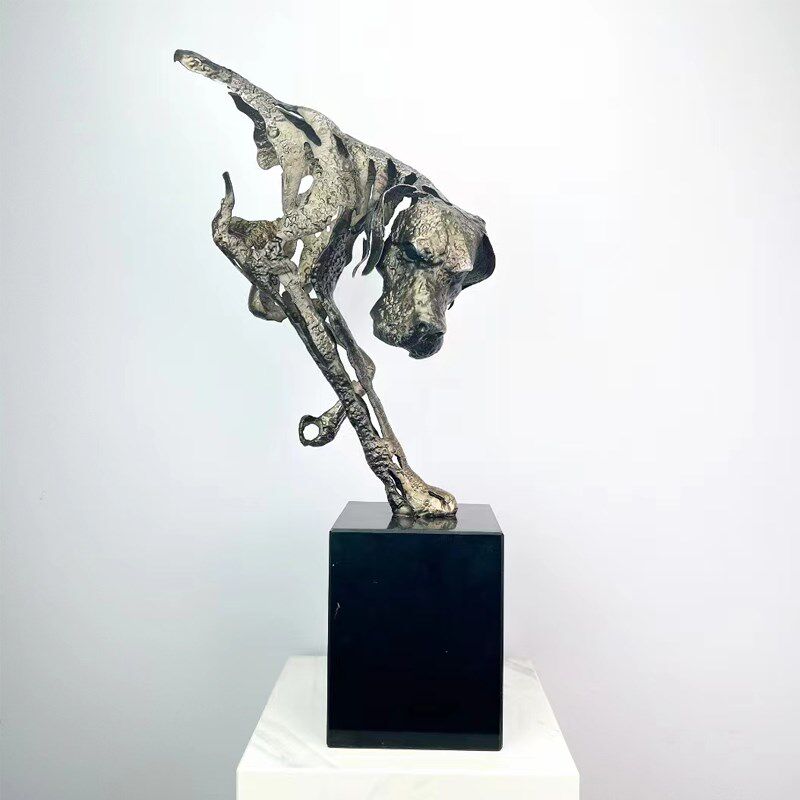 现代简约金属人物动物抽象雕塑镂空马头猎犬猫头鹰大象装饰品