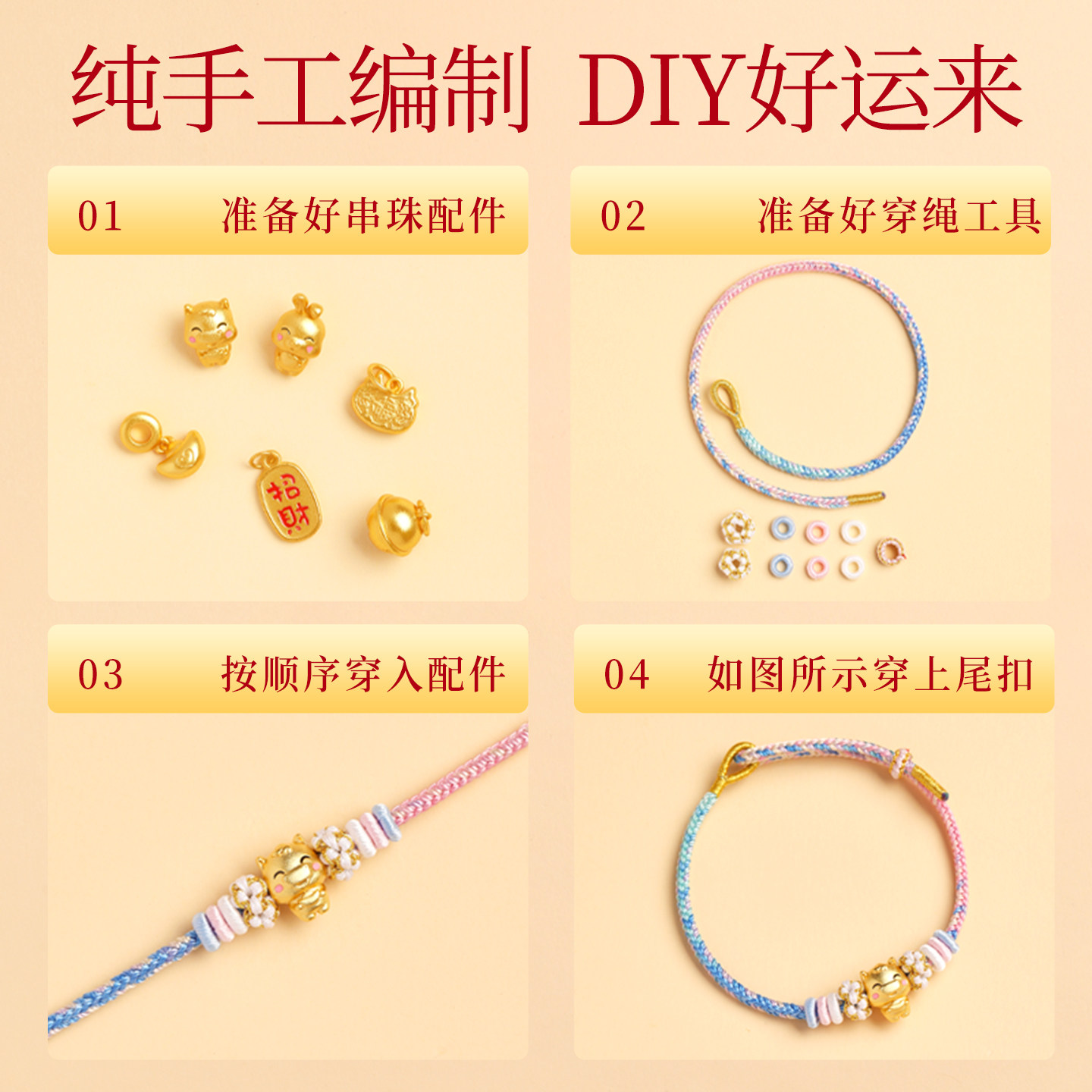 可穿珠手工编织绳diy编绳红绳手链半成品转运珠可穿黄金极细手绳