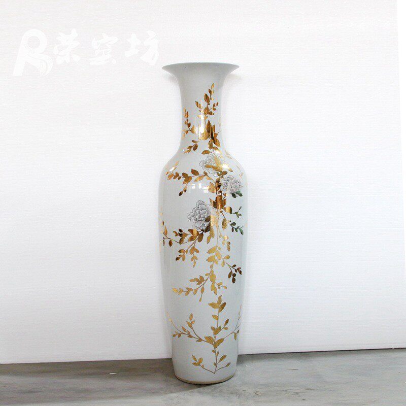 景德镇陶瓷器落地大花瓶手绘家居描绘花瓶描金客厅落地摆件1.4米
