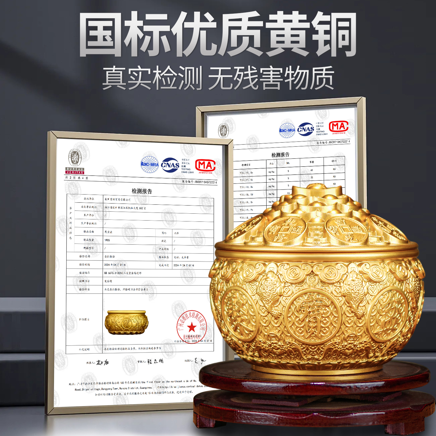 黄铜聚宝盆摆件带盖子金蟾铜缸招财进宝客厅聚财米缸店铺开业礼物