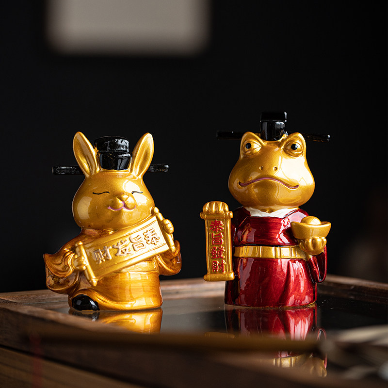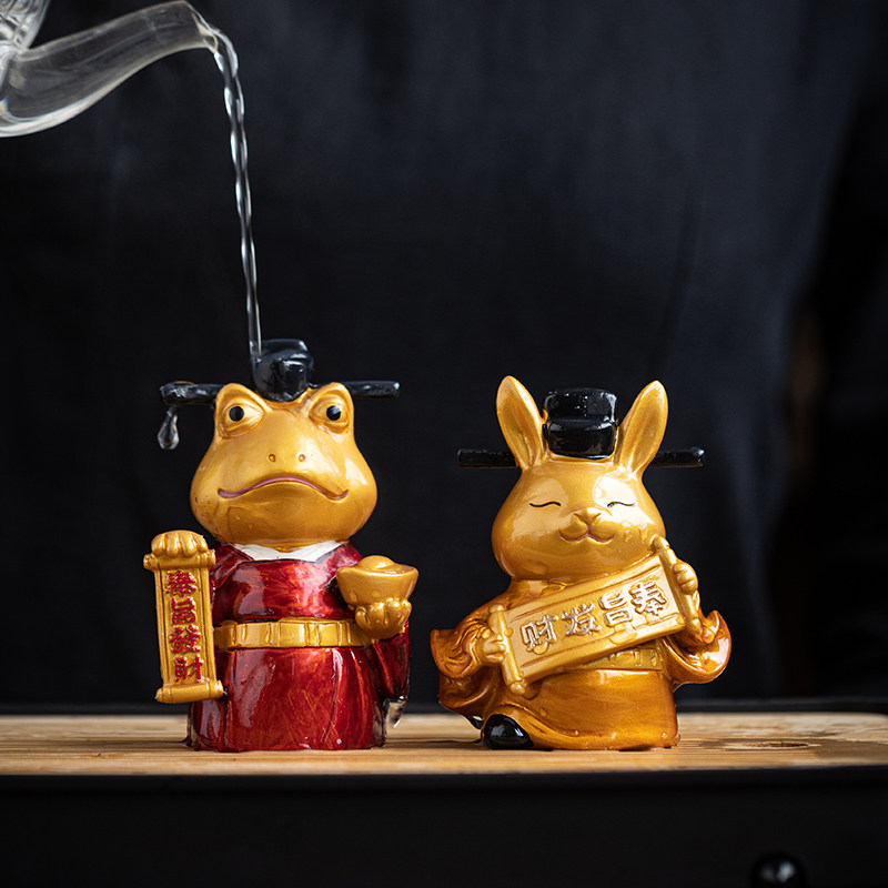 奉旨发财玉兔金蟾官变色可养茶玩精品茶宠摆件茶台配件茶桌装饰品