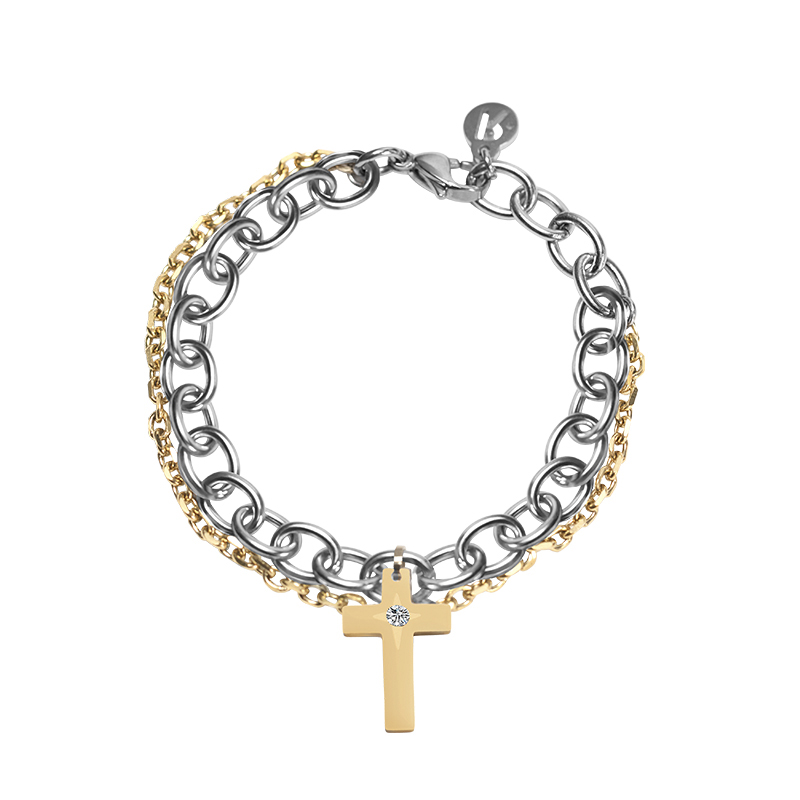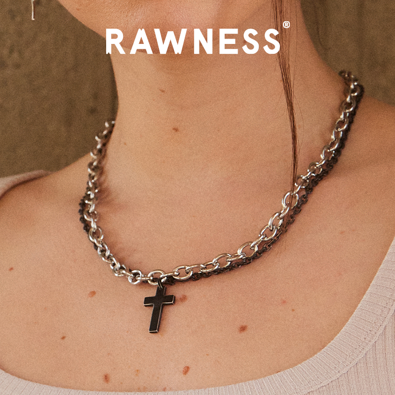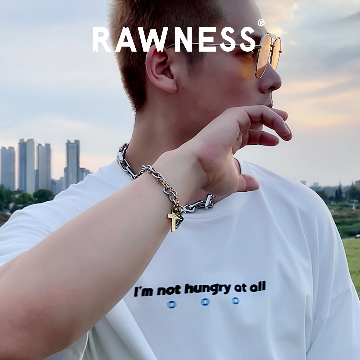 RAWNESS双链手链 十字架钛钢叠戴手饰嘻哈饰品送男友复古钛钢手链