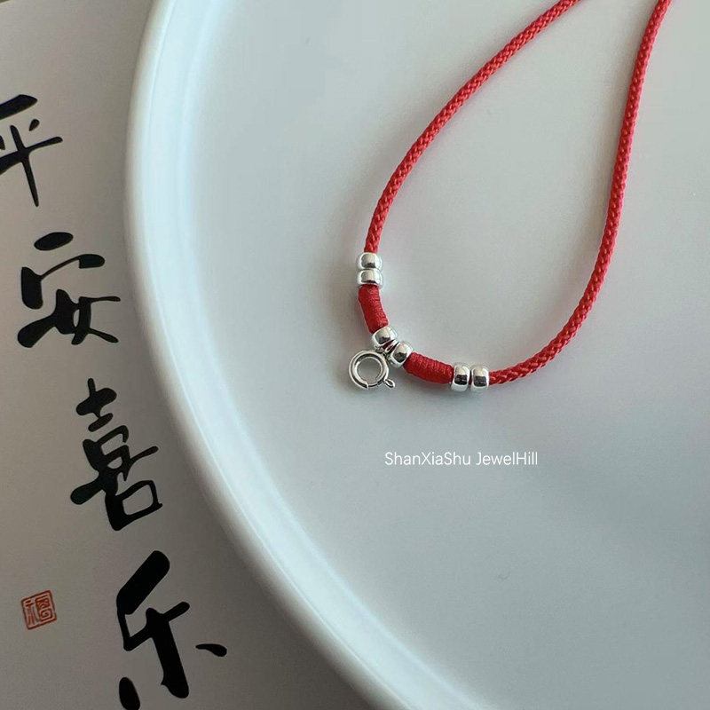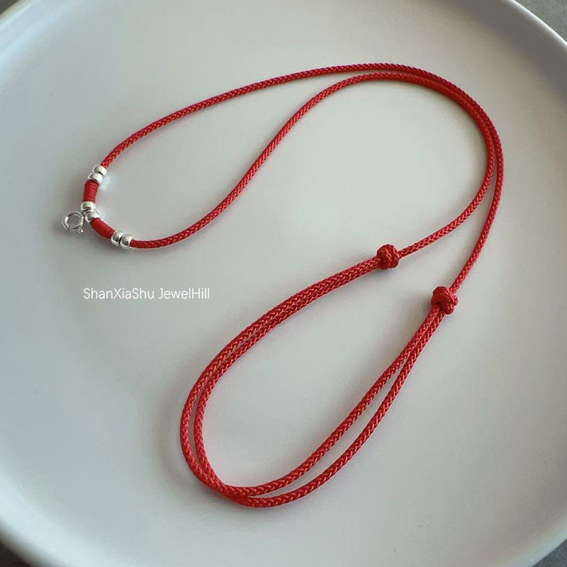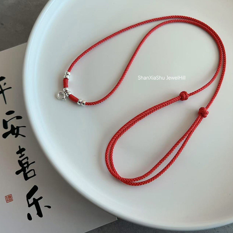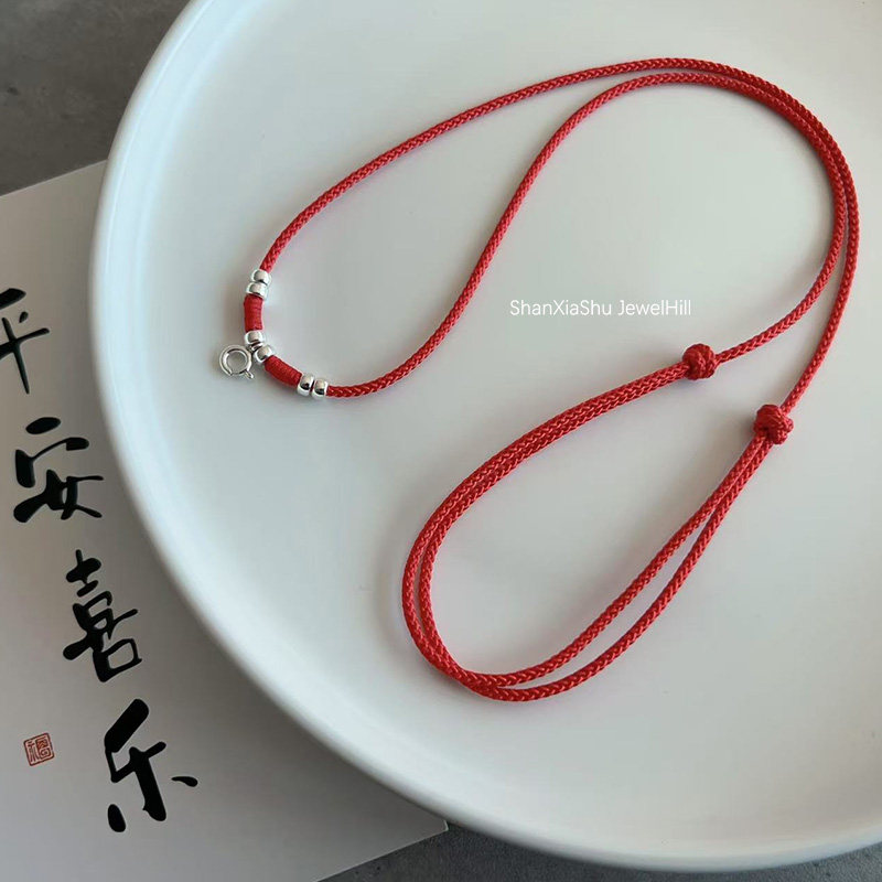山下树 祈福 中式小众纯银红色可调节半成品项链绳挂吊坠本命年