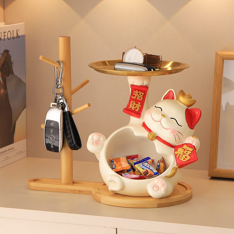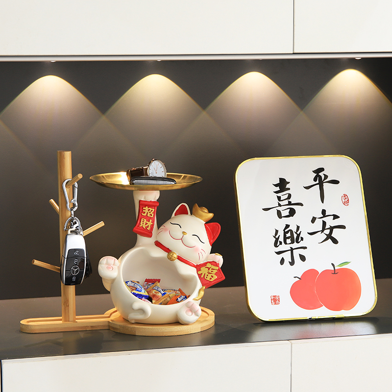 招财猫玄关钥匙收纳摆件乔迁之喜新居布置装饰用品搬家仪式新房子