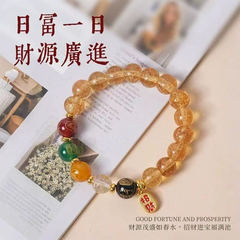 南京鸡鸣五路财神招财手串金箔琉璃财运手链学生好运礼物旗舰正品