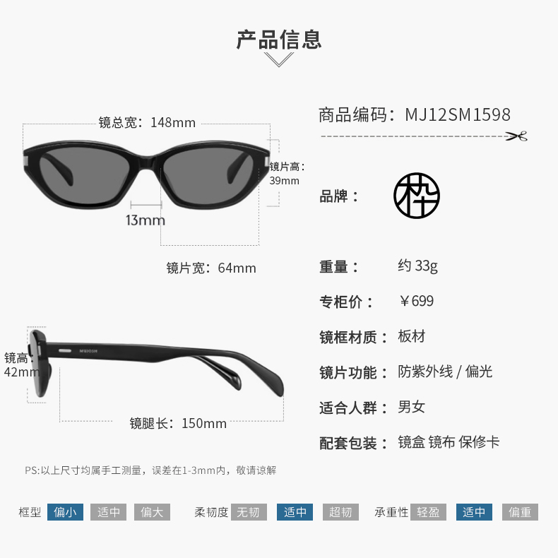 木九十专柜正品MJ12SM1598潮流小窄框多边形猫眼框飘面太阳镜欧美