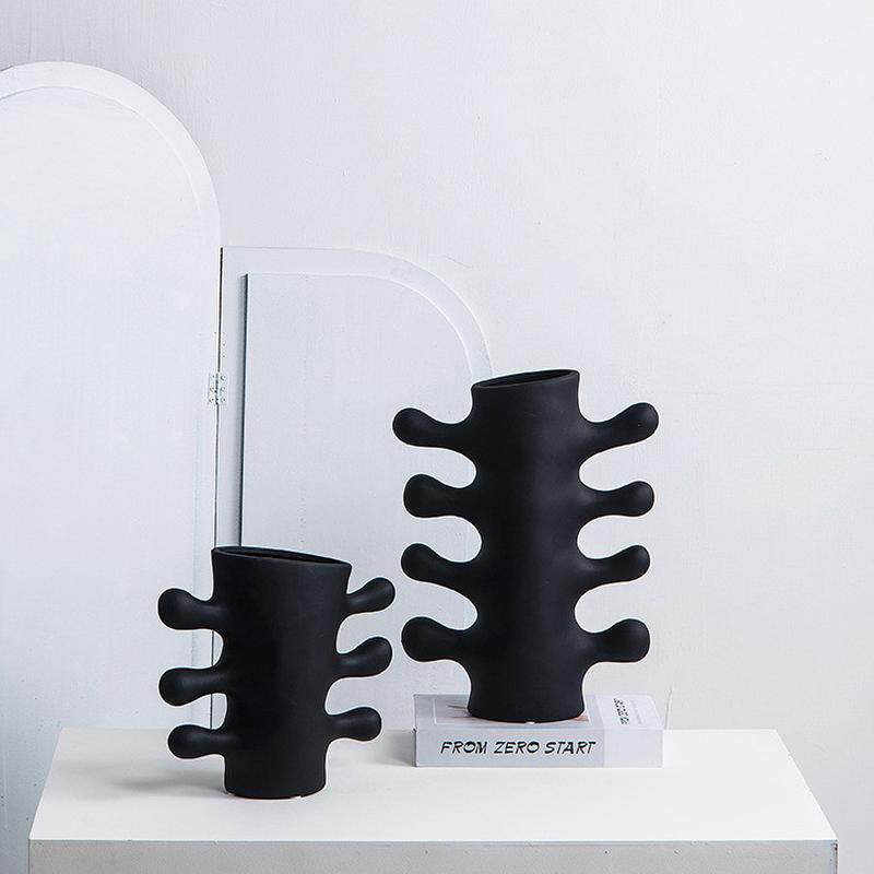 现代花器艺术白色陶瓷花瓶样板间售楼处玄关台面装饰品插花抽象
