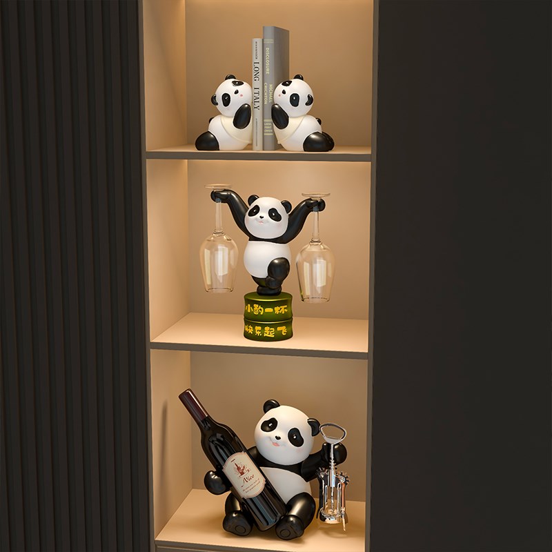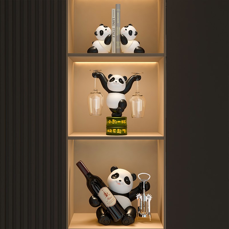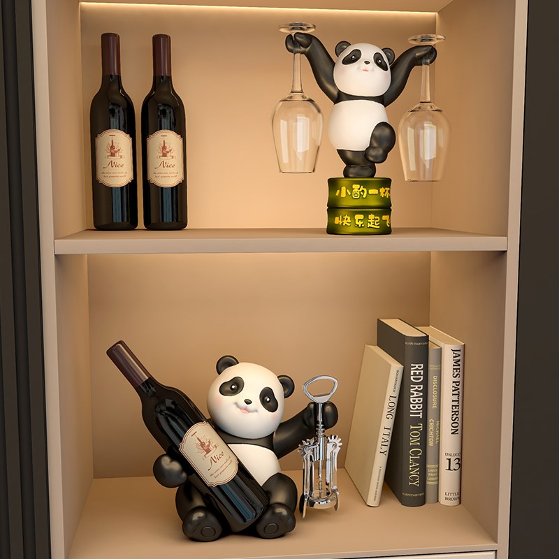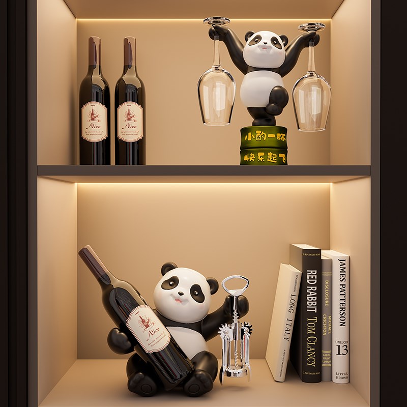 轻奢高级感红酒架熊猫摆件客厅餐边柜杯架酒柜装饰T品乔迁新居礼
