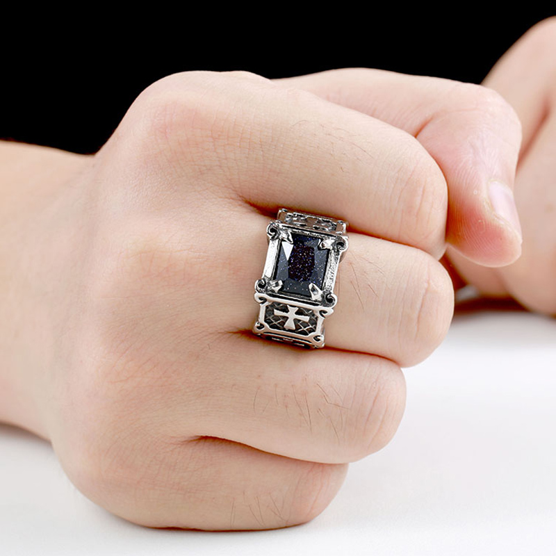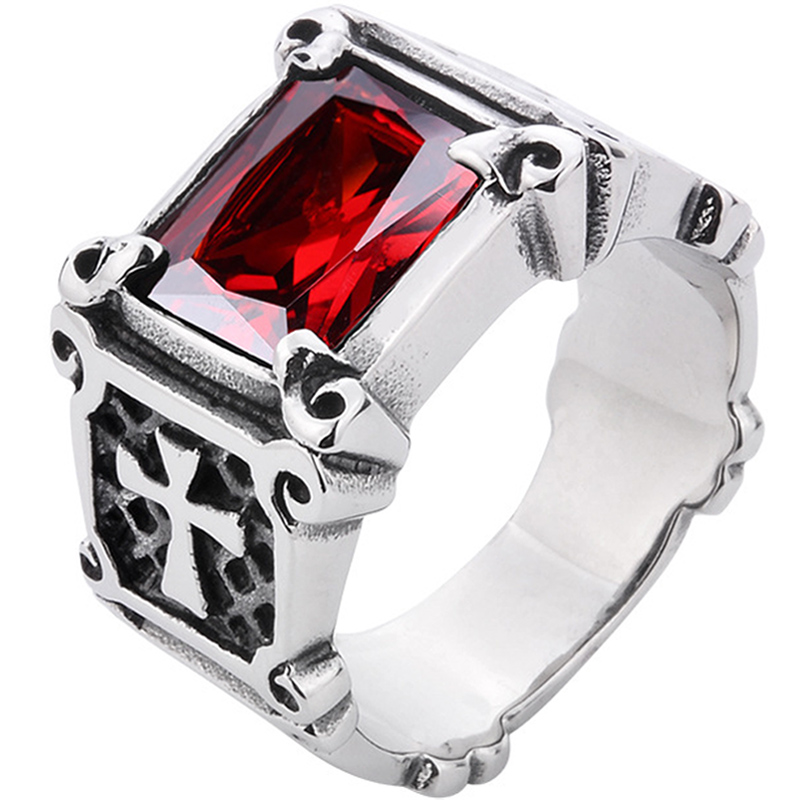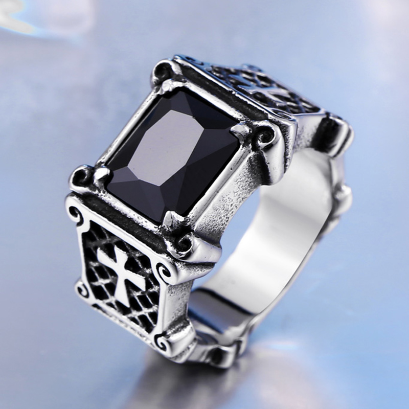 宝石十字架戒指男个性霸气欧美复古钛钢戒子日韩潮人单身食指潮男