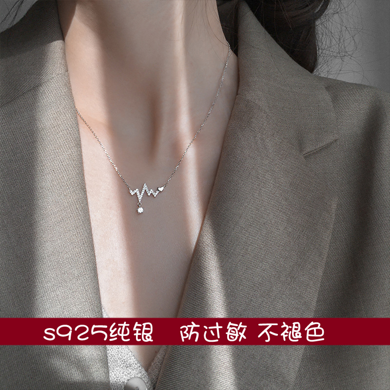 闪钻心跳925纯银项链女夏小众设计感高级2021年新款轻奢小众仙气