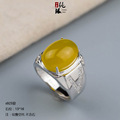 925银空托男戒 戒托男式 镶嵌南红琥珀蜜蜡宝石 大尺寸戒托活口
