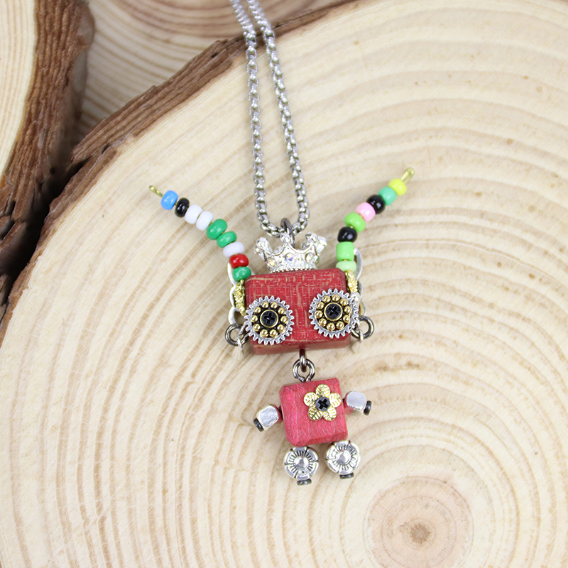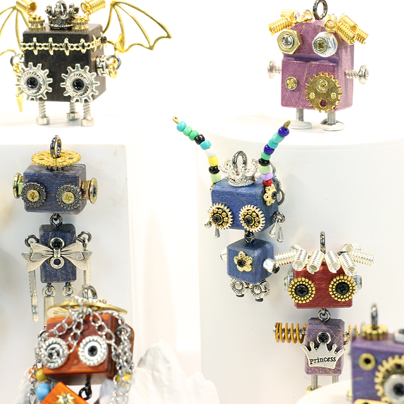 木小魔项链DIY材料包情侣亲子手作包 木质蒸汽朋克机器人潮流挂件