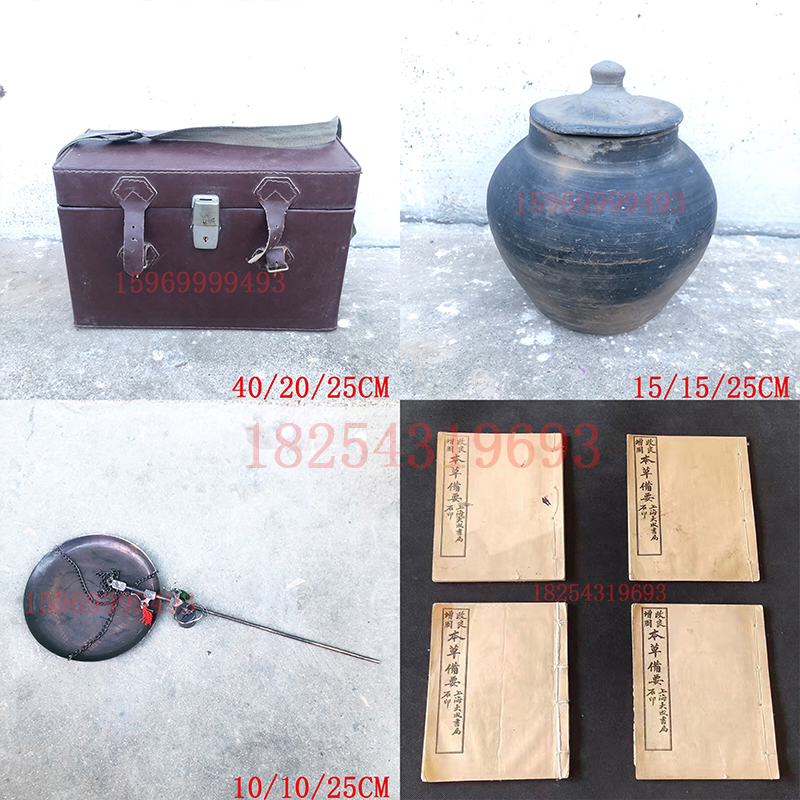 老物件复古怀旧中医馆医书摆件民俗药捻子药铡刀捣药罐药碾子装饰