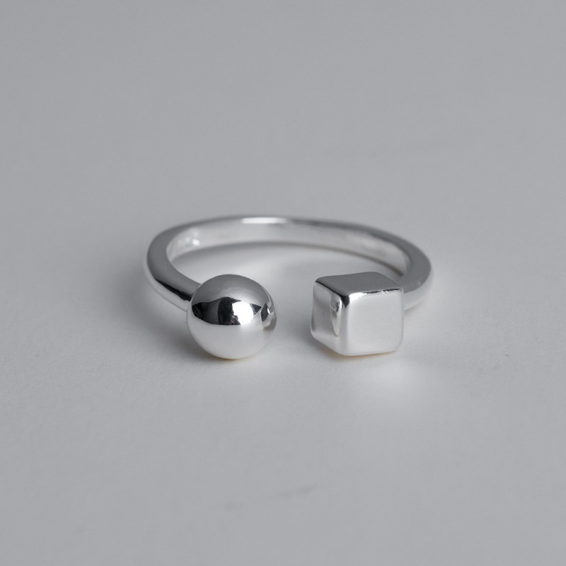 925纯银方块戒指女简约冷淡风设计指环个性潮高级感素圈食指戒子