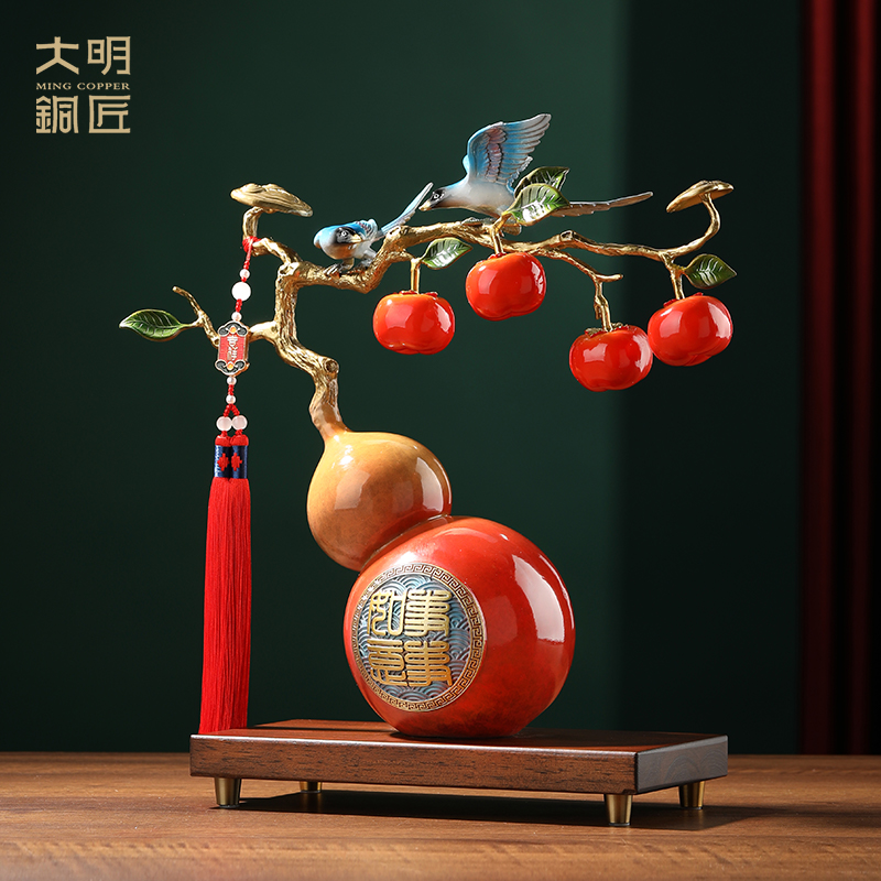 大明铜匠事事柿柿如意葫芦摆件柿子家居客厅装饰搬家乔迁新居礼品