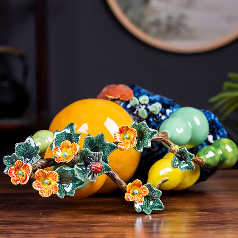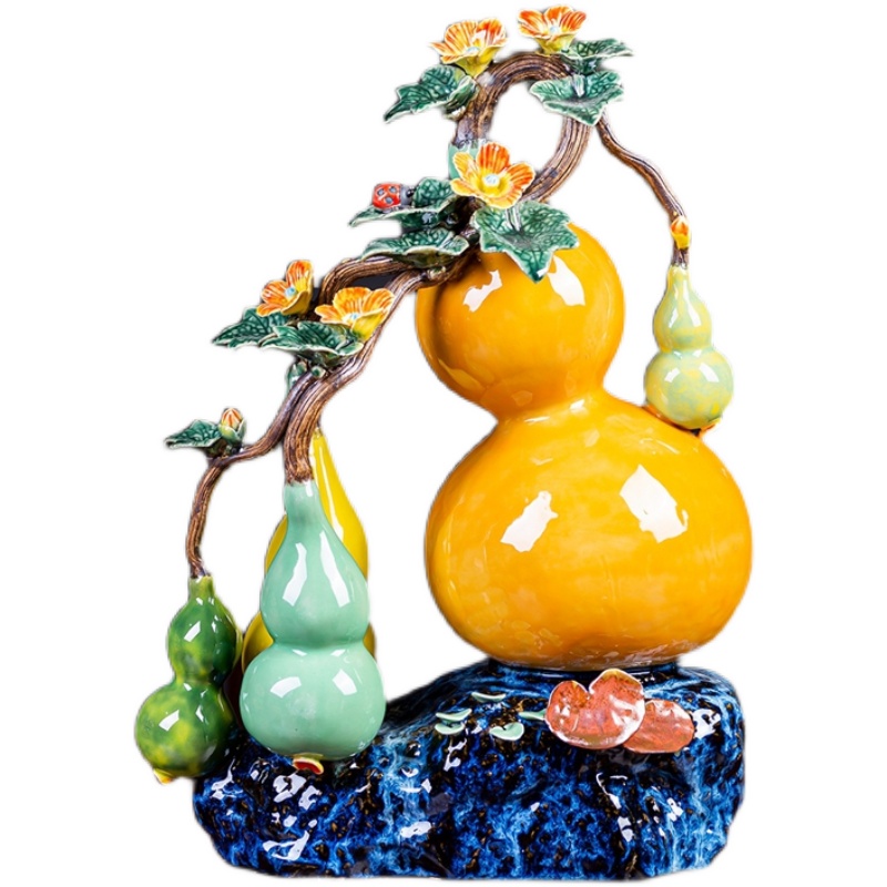 大号葫芦摆件石湾公仔陶瓷工艺品新中式客L厅玄关装饰乔迁新居礼