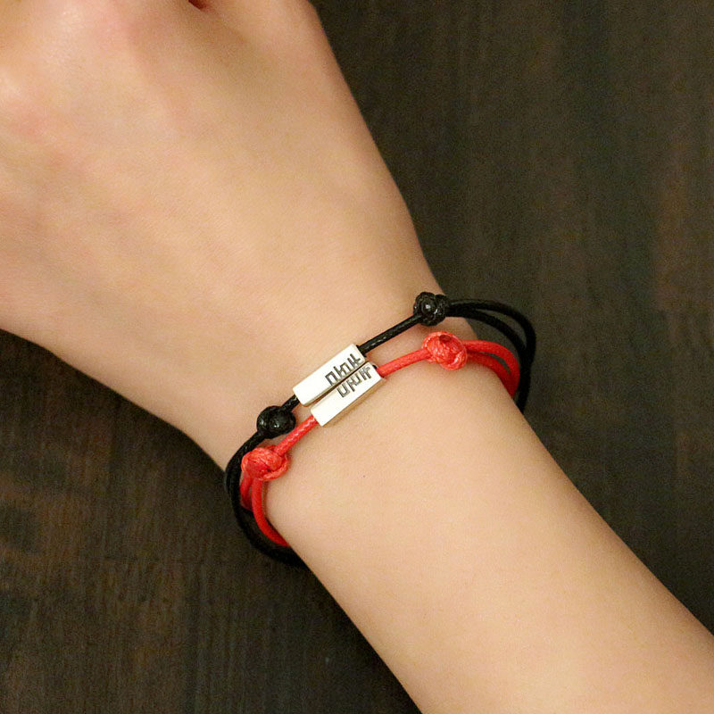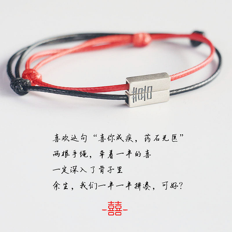 喜字手链S925纯银复古风刻字手链女本命年红色手绳情侣款黑色新年