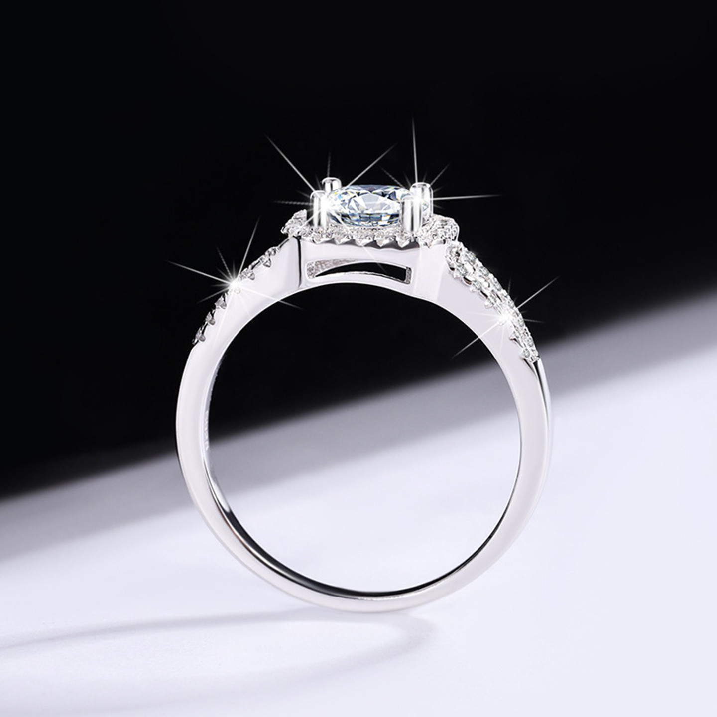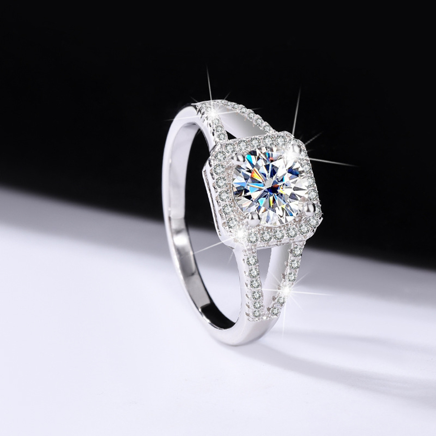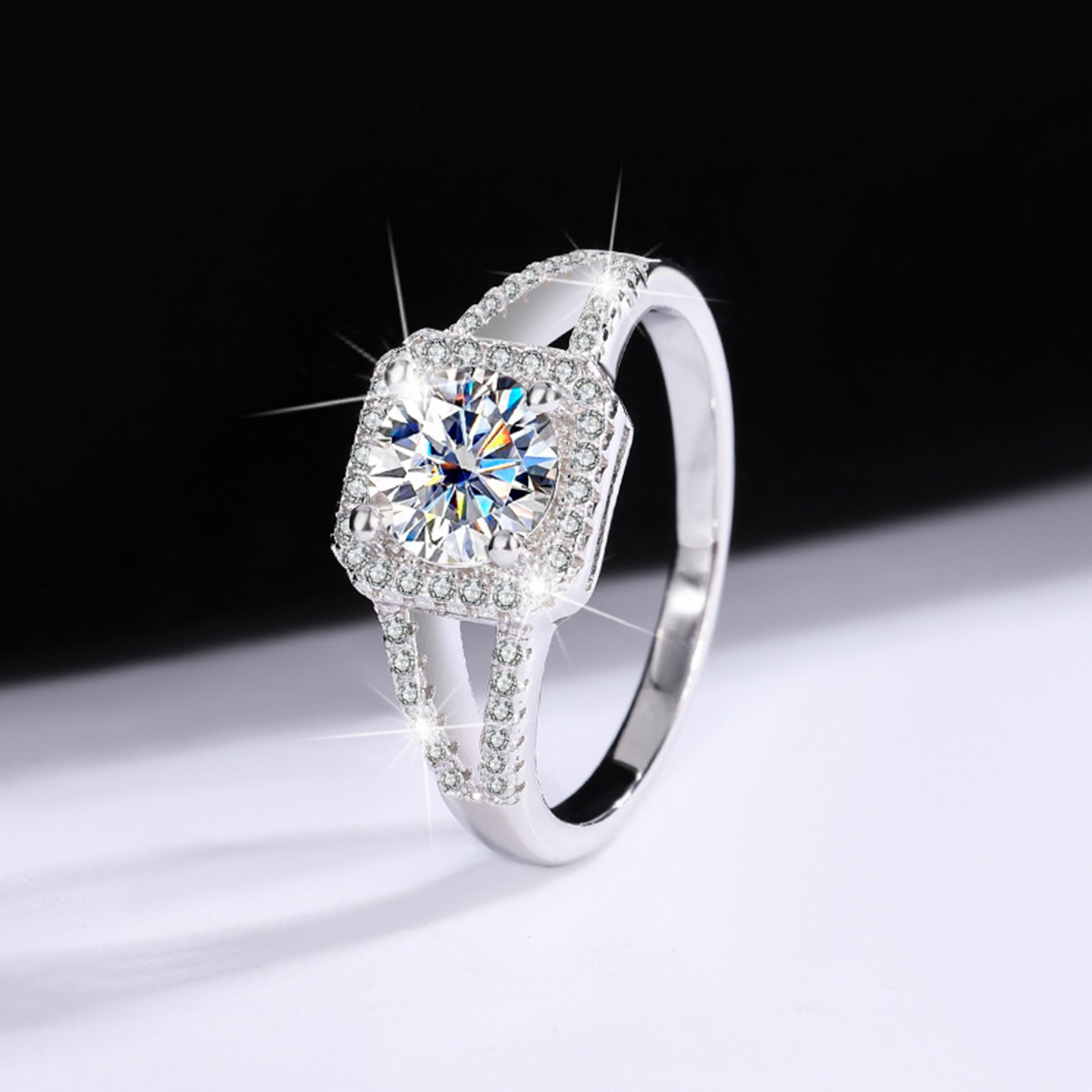 S925纯银戒指双排方包莫桑石求婚结婚女钻戒送女朋友求婚表白戒指