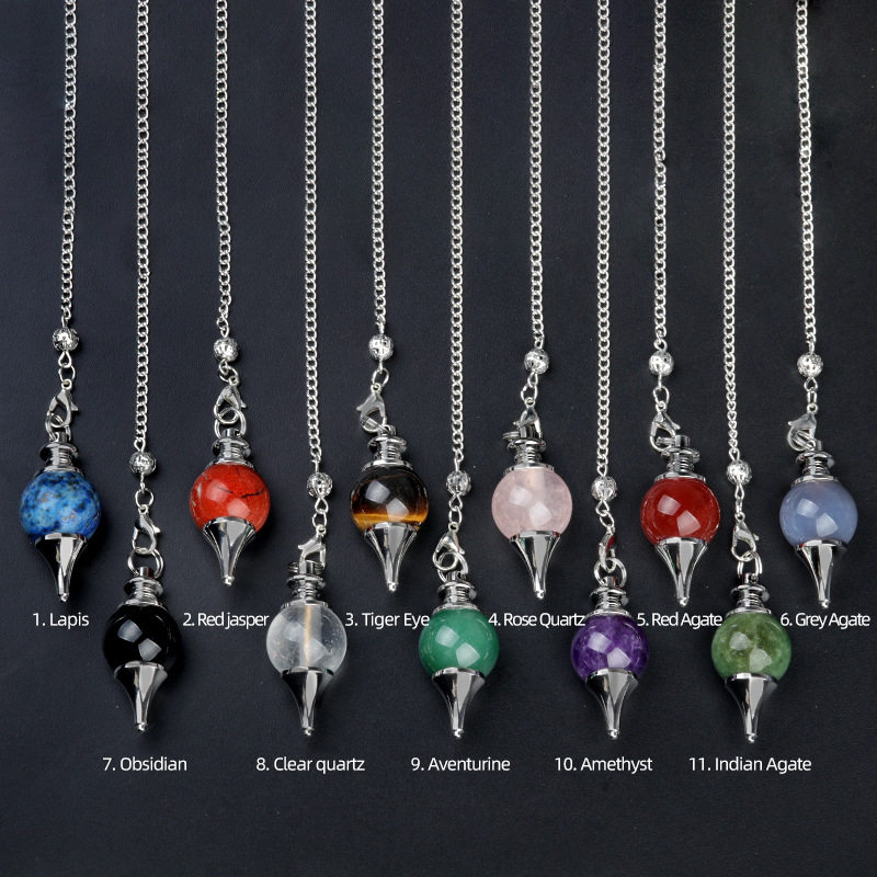 -天然水晶玛瑙半宝石圆球灵摆吊坠 可拆卸三件套灵摆挂链