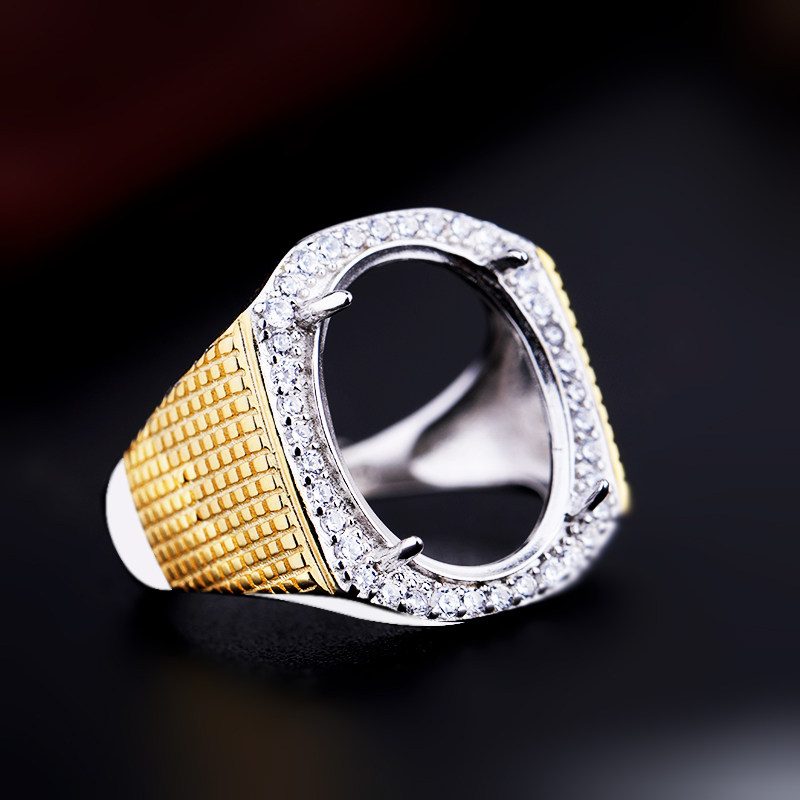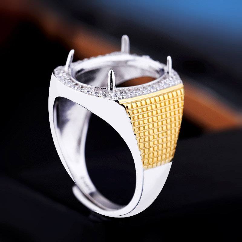 S925纯银戒指空托男士diy镶嵌翡翠玉石绿松宝石戒面开口戒托13*16