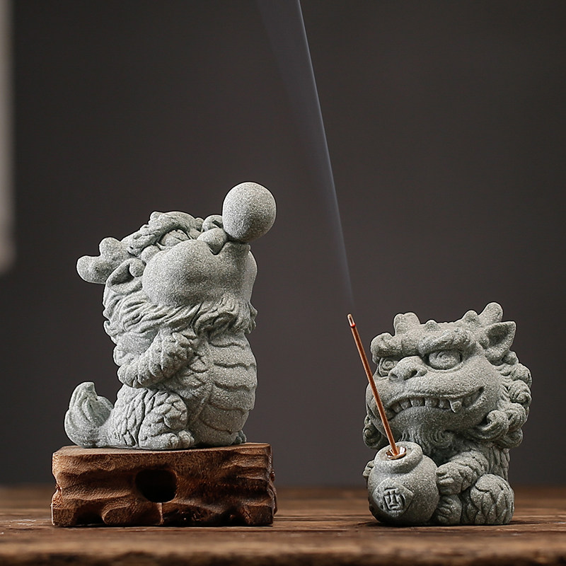 创意小麒麟线香插香托香器摆件卡通可爱泡泡龙鱼缸造景桌面装饰品