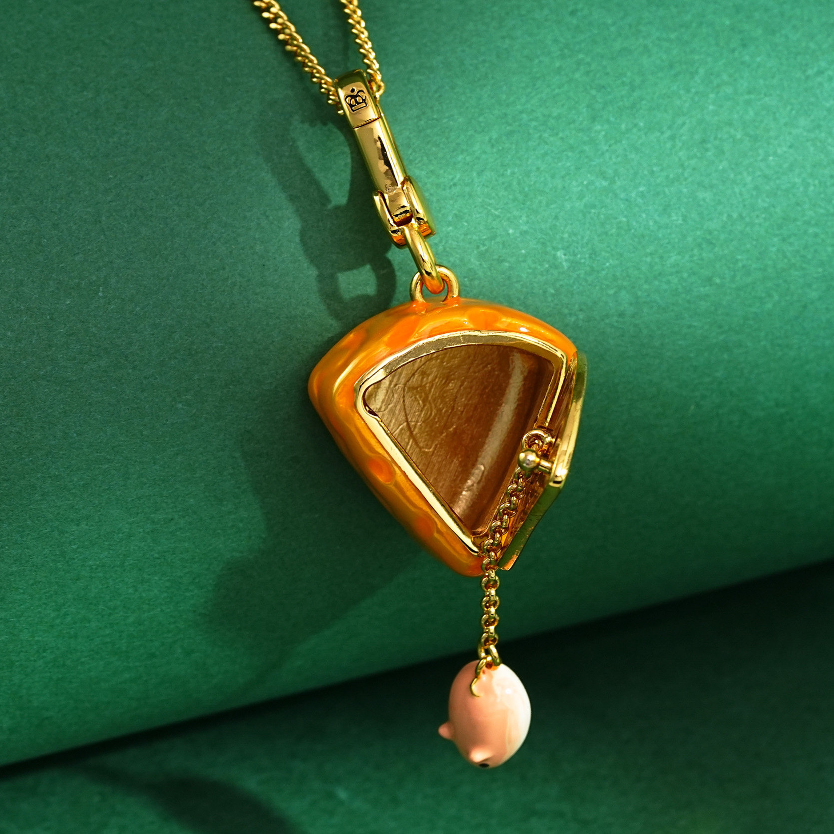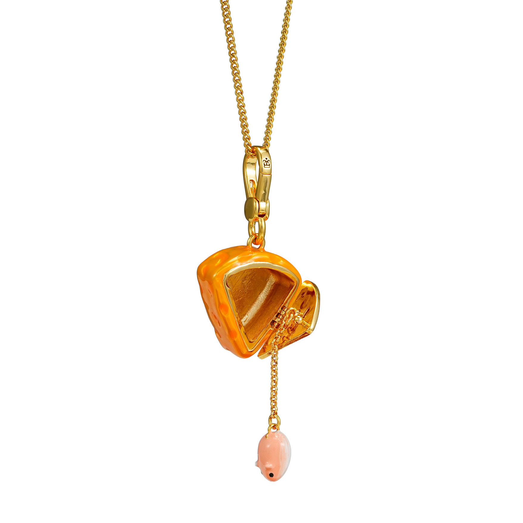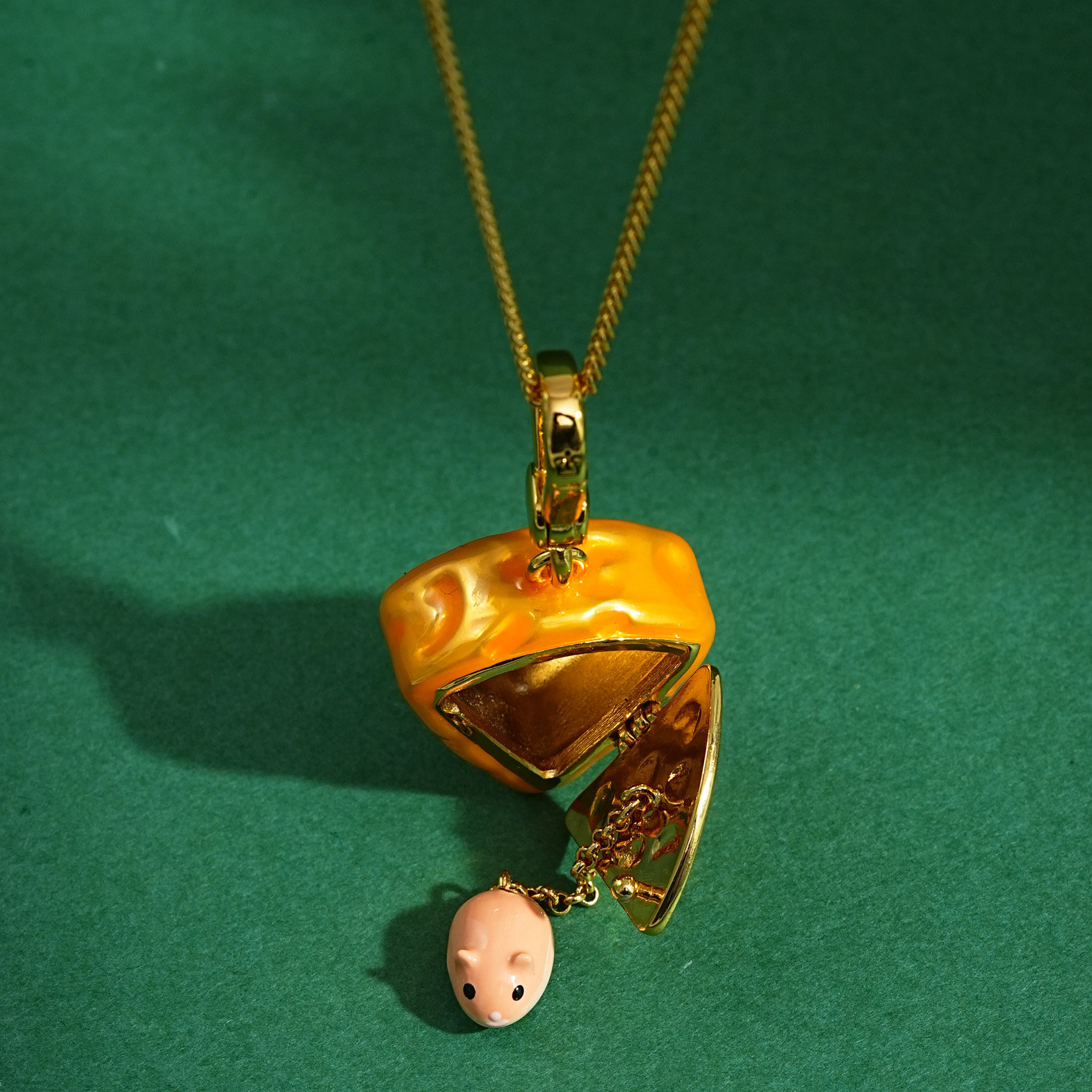 原创设计珐琅彩釉可打开黄色奶酪小老鼠吊坠项链可爱萌趣仓鼠挂件