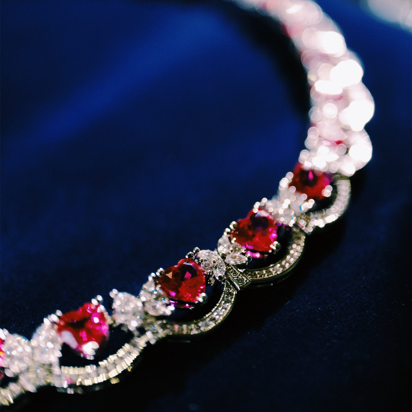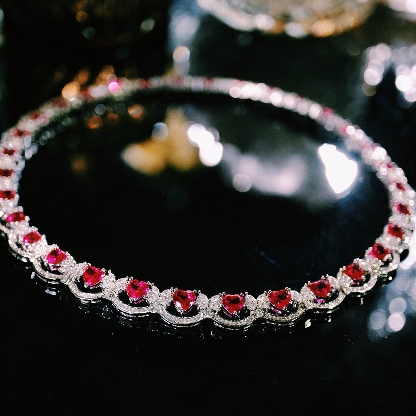 法式轻奢微镶红宝石choker项链女波浪形礼服晚宴颈链高级感设计女