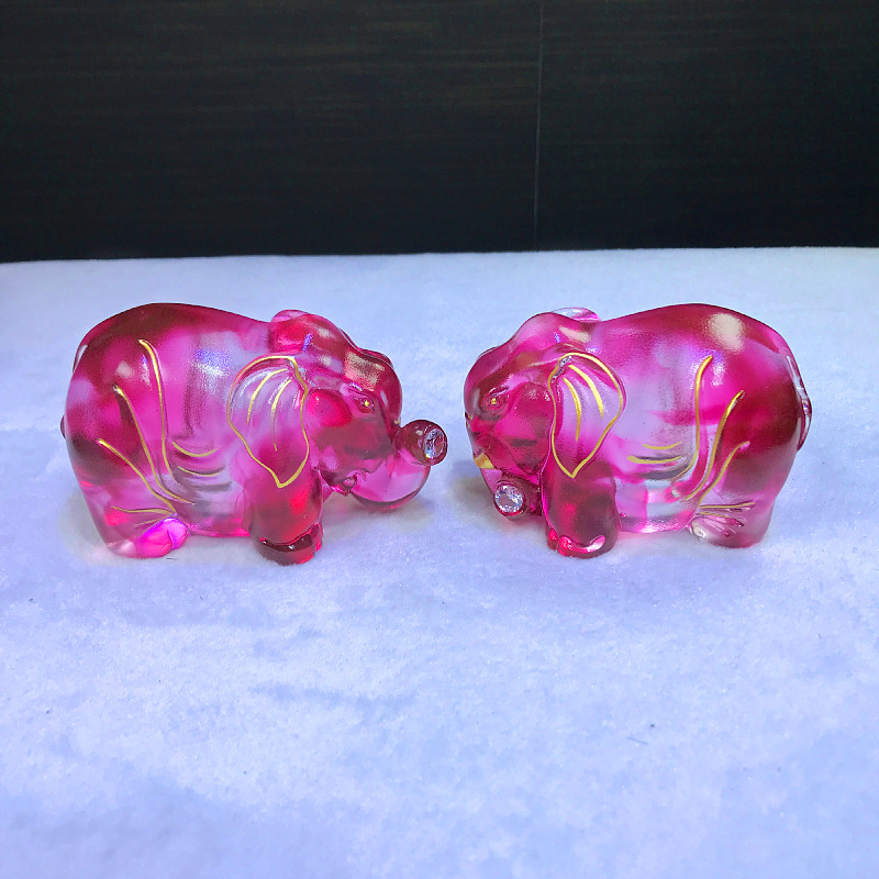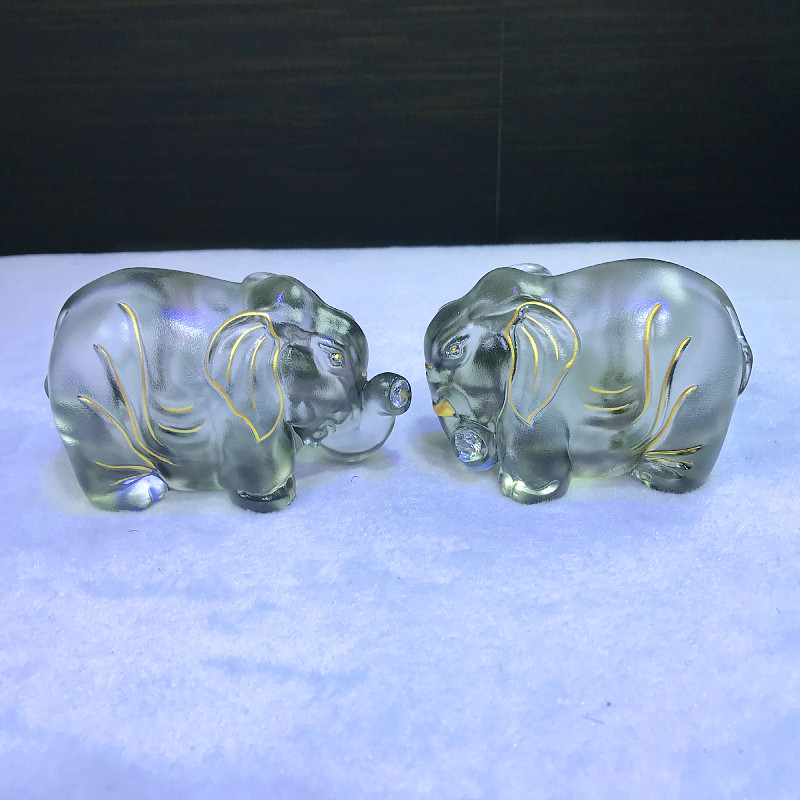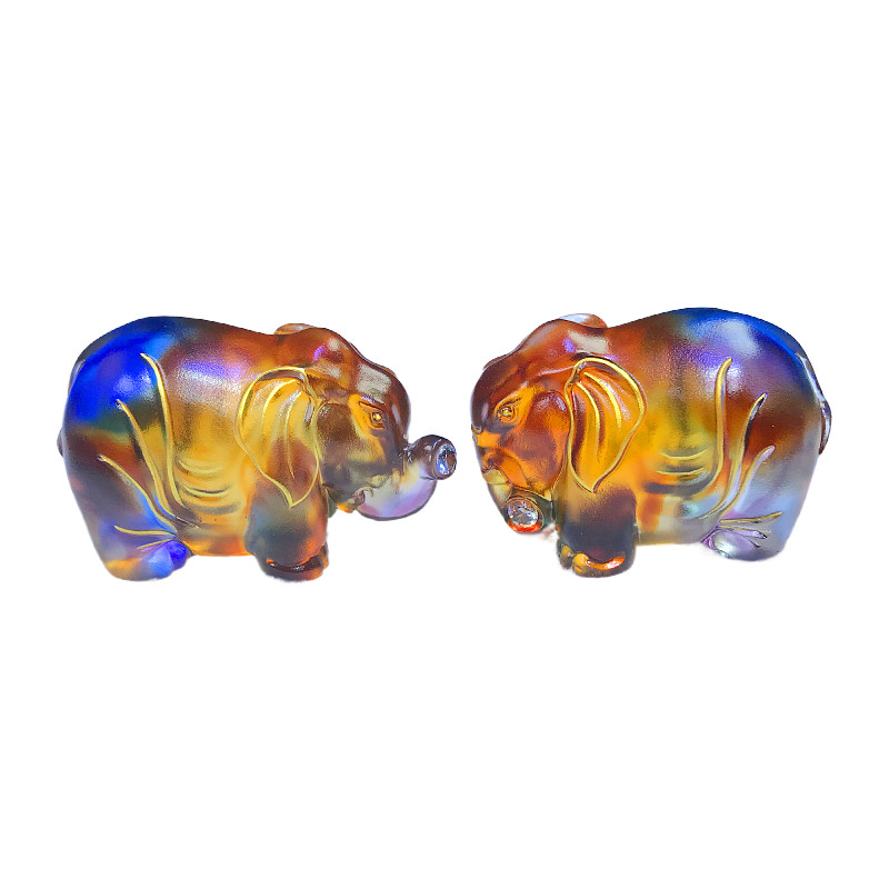 鎏金琉璃大象摆件一对小象工艺品高档家居客厅酒柜玄关办公室装饰