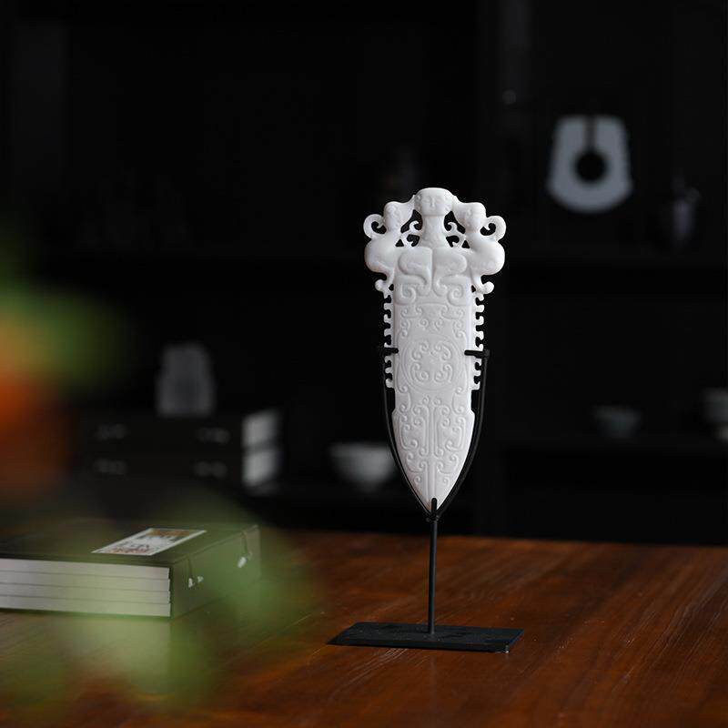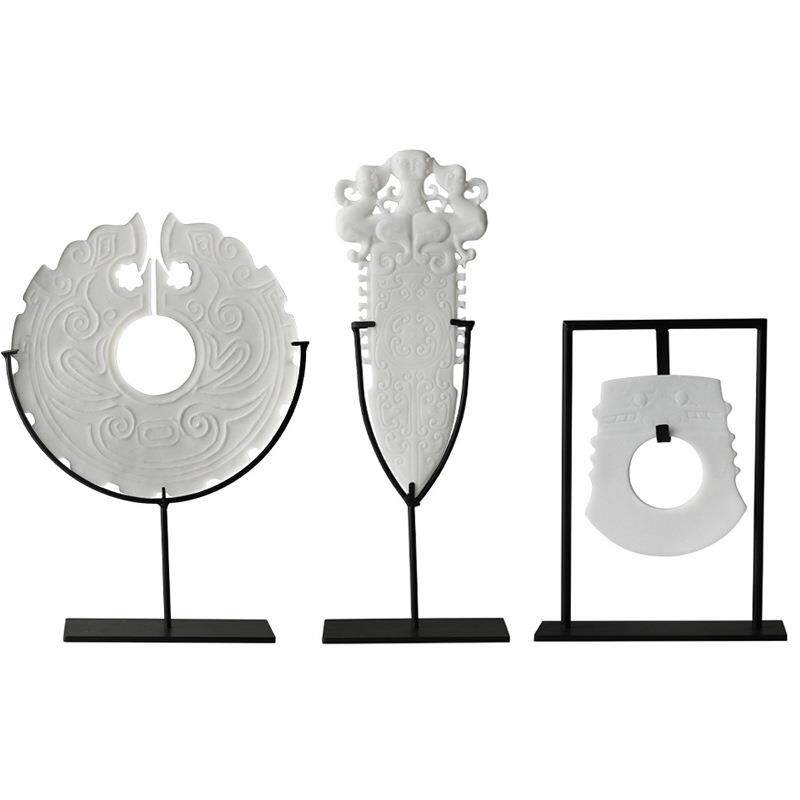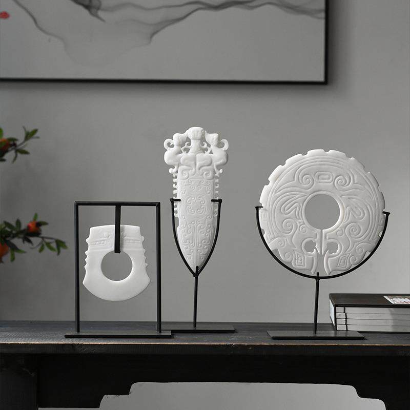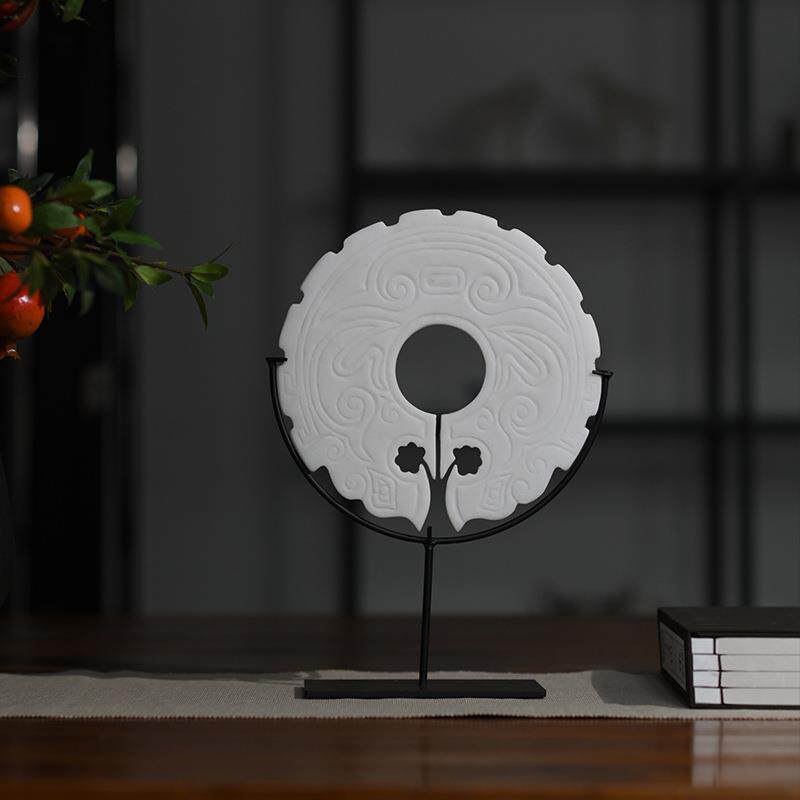 新中式树脂白色玉璧斧钺平安扣摆件酒店别墅玄关电视柜家居装饰品