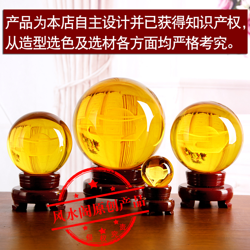 红色黄水晶球玻璃球女孩白蓝水晶鸿运当头客厅办公室家居装饰摆件