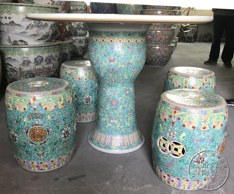 景德镇陶瓷桌子凳子凳子套件手绘蓝色粉彩寿字户外瓷器桌