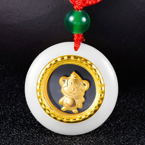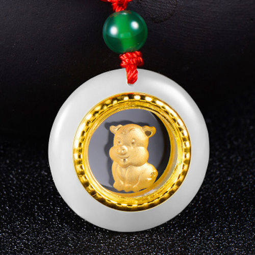 本命年金镶玉吊坠时来运转和田玉十二生肖平安扣挂件宝宝满月礼物