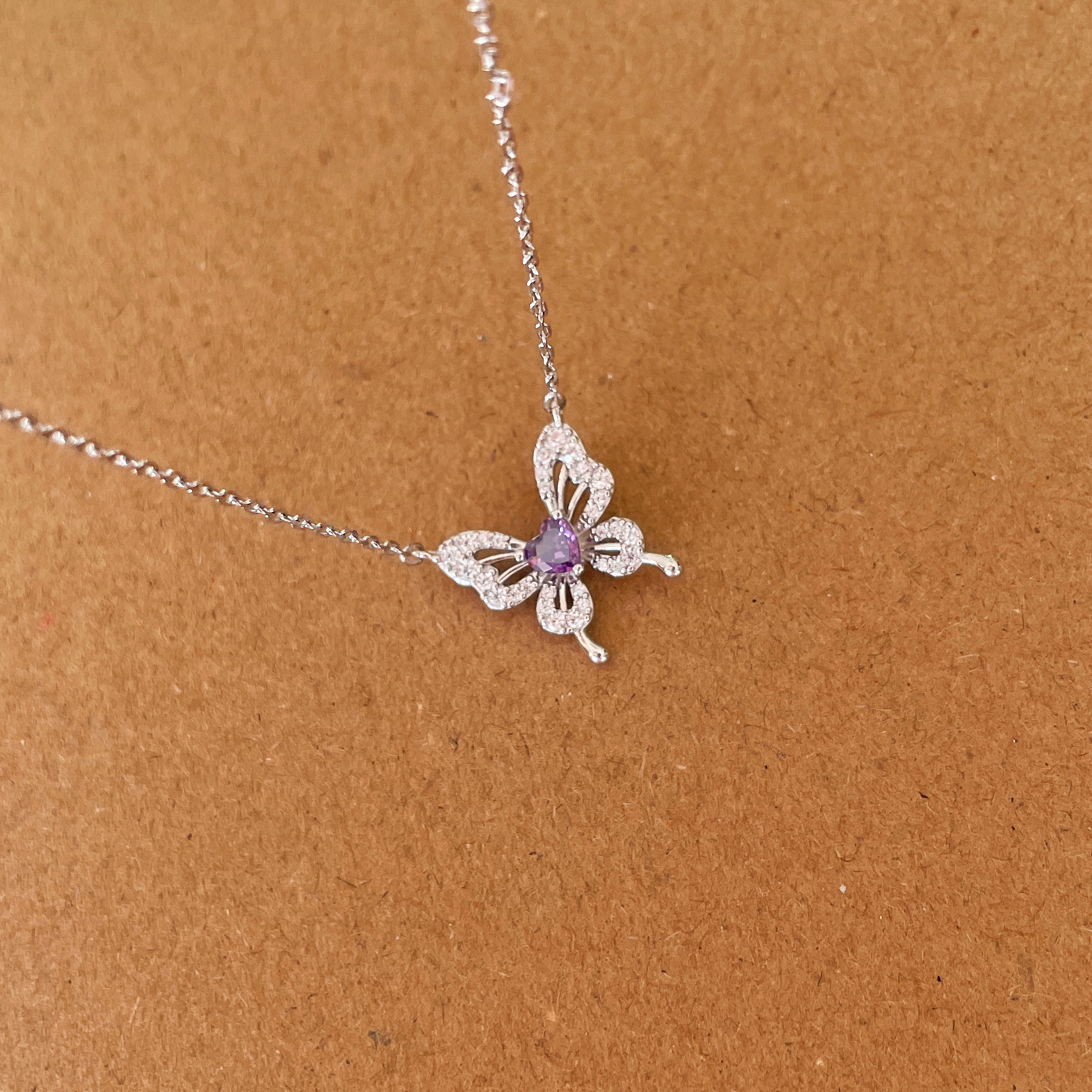TDS999纯银蝴蝶项链高级感爱心紫色钻石锁骨链轻奢百搭礼物气质女