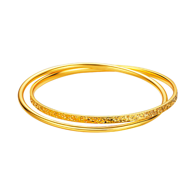 金店同款沙金碎冰冰双环手镯时尚网红同款碎冰纹百搭双圈手环手饰