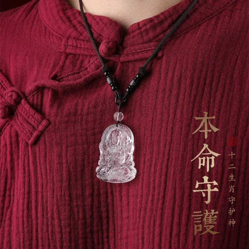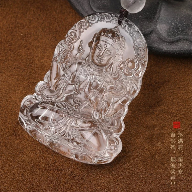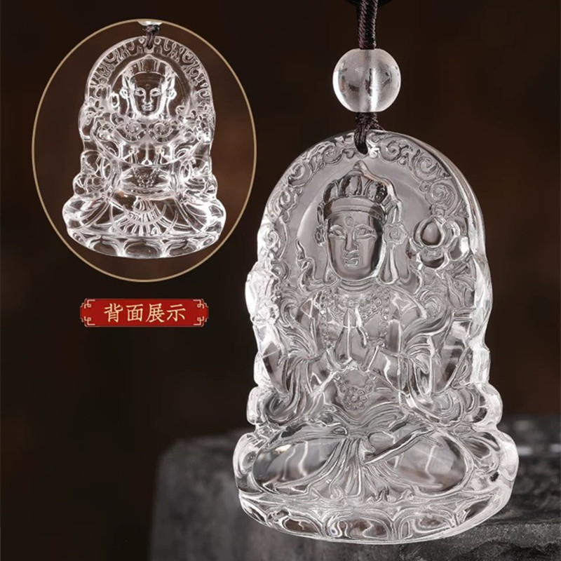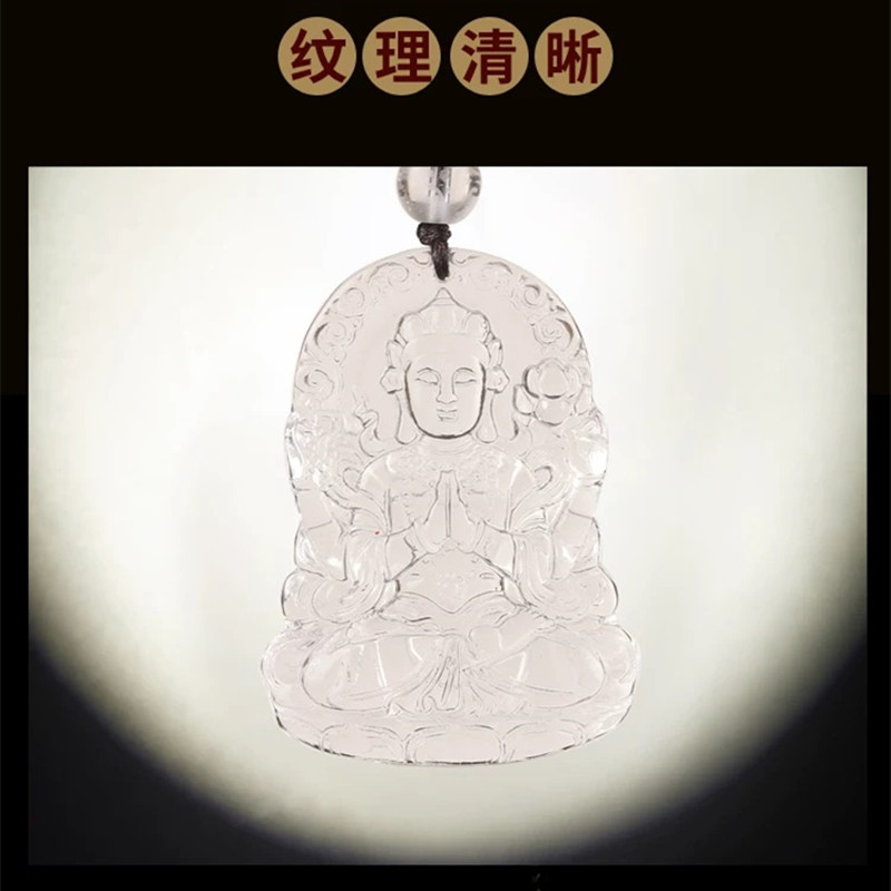 正品天然白水晶吊坠女观世音菩萨挂件男本命年平安护身符项链饰品