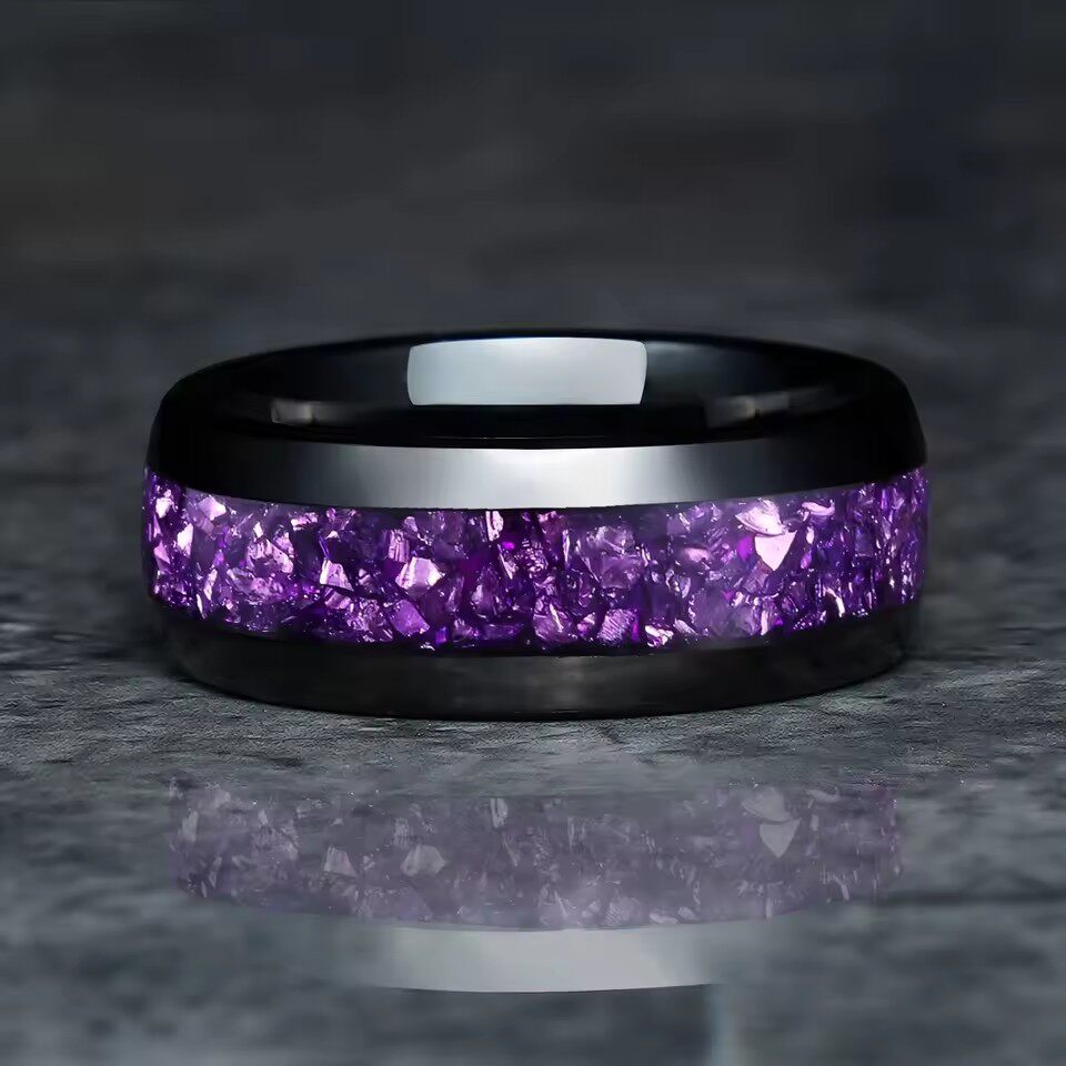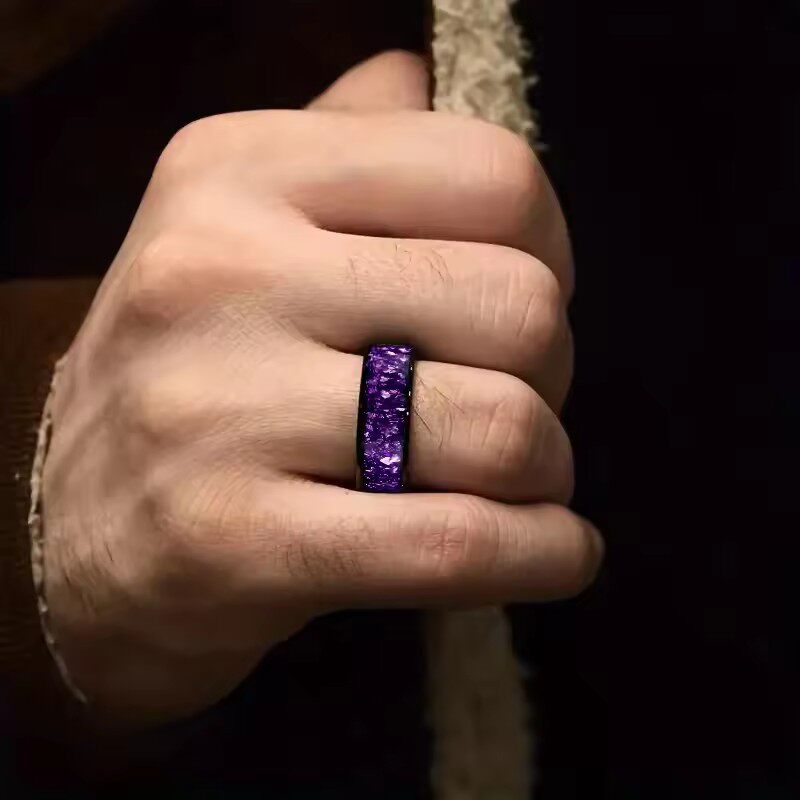 跨境爆款不锈钢戒指优雅蓝紫色星空花卉戒指简约镶嵌男式指环