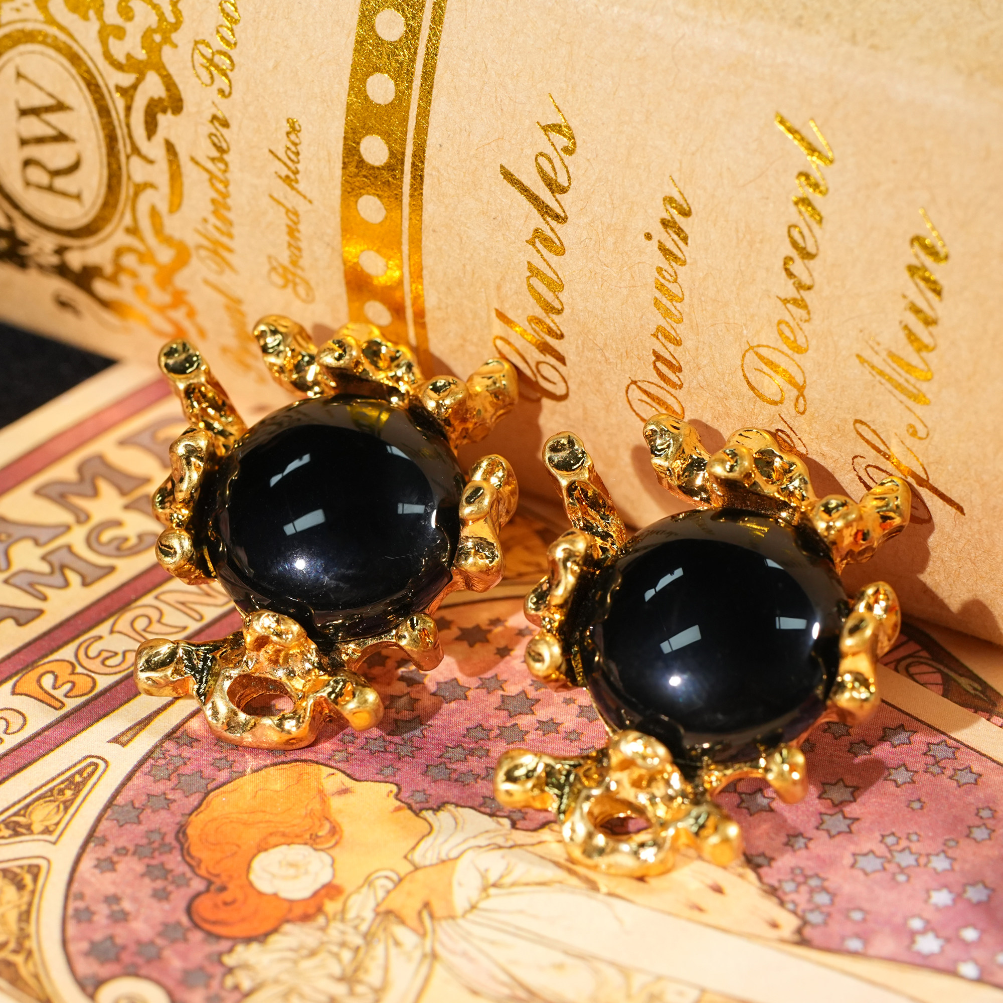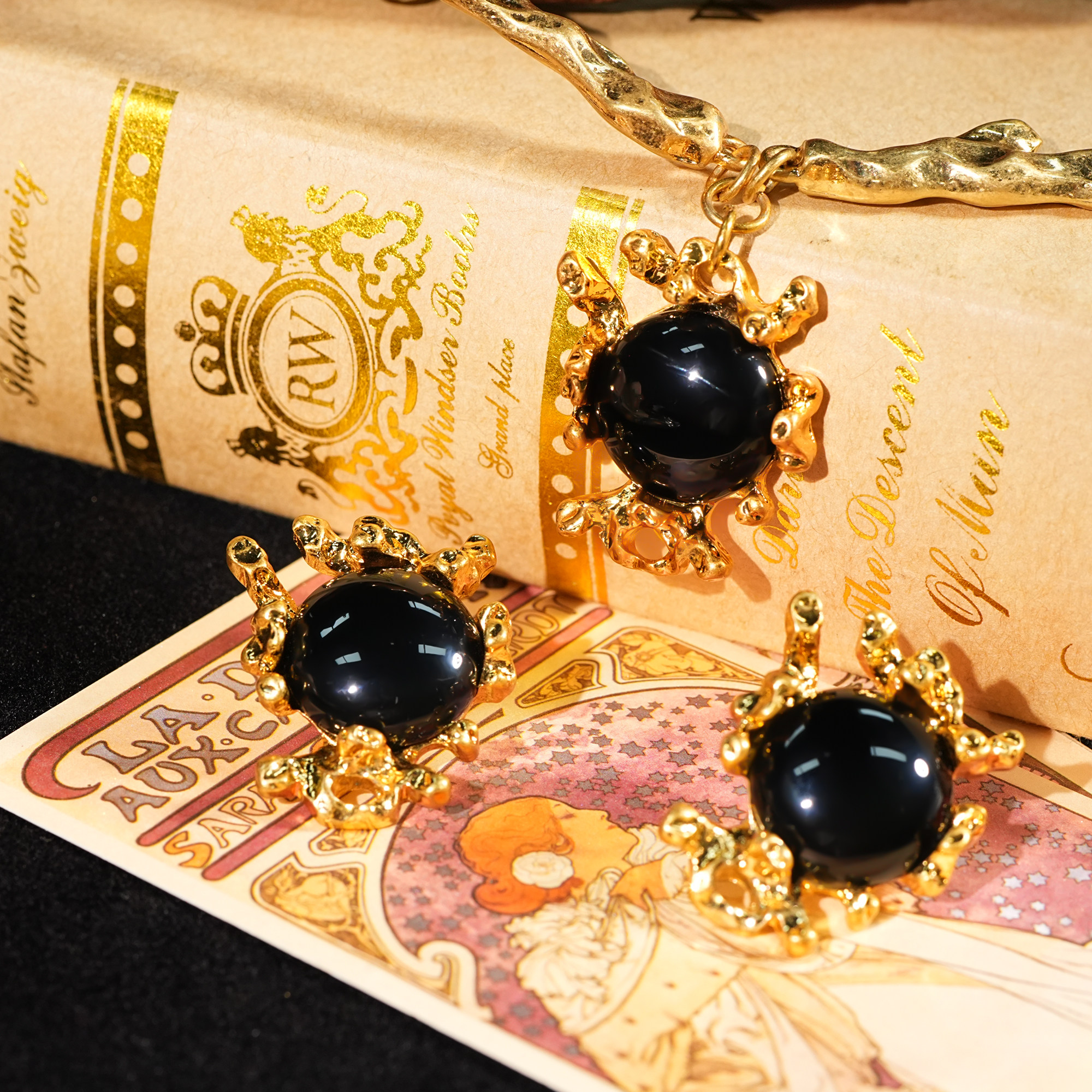 《爪瓦套装》Vintage重工黑色浮雕项圈耳钉纪念夸张项链耳钉套装