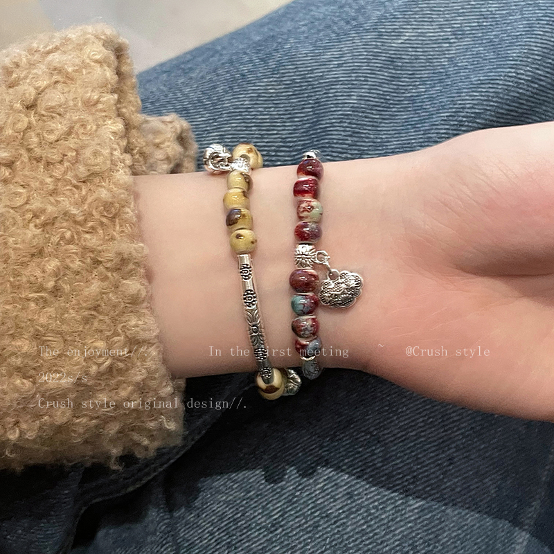 新中式琥珀石平安锁手链女轻奢小众设计感高级精致复古手串手饰品